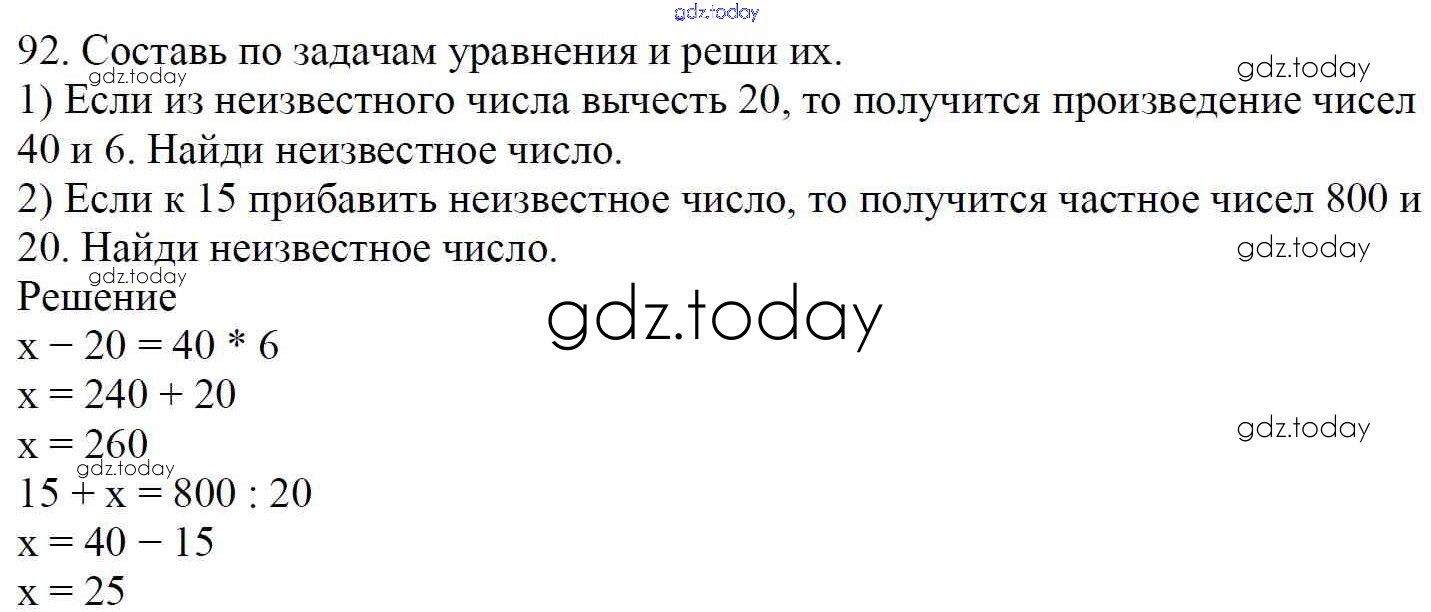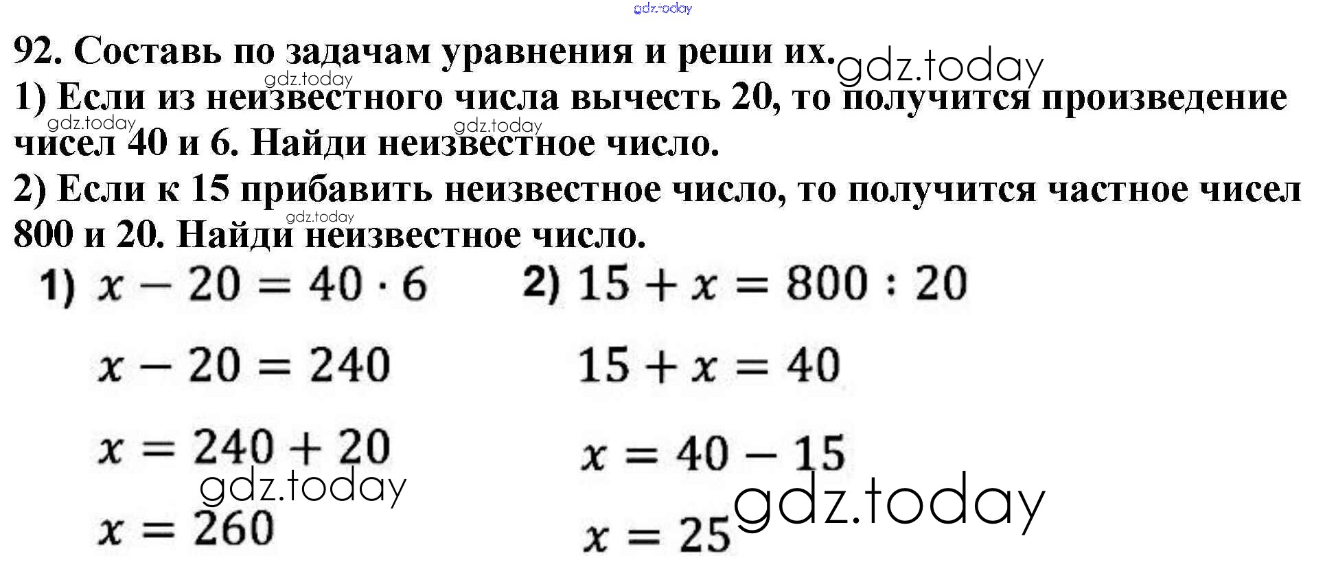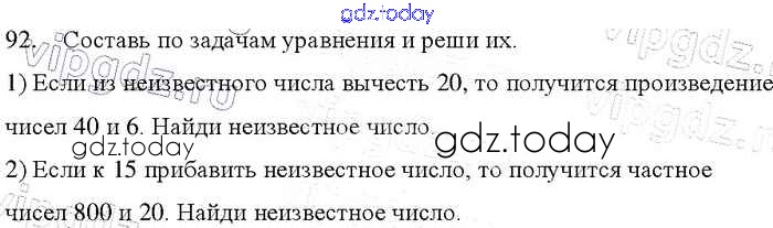Ответы к Упражнения Решение к части 2 92 Учебнику по Математике для 4 класса Моро, Бантова Просвещение Школа России 2015