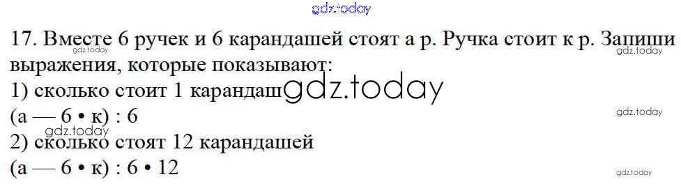 На страницах сайта gdz.today вы найдете учебный и вспомогательный материал, направленный на улучшения знаний школьной программы. ГДЗ - онлайн мир знаний Задачи (стр. 97-102) Итоговое повторение 17 Учебнику по Математике для 4 класса Моро, Бантова Просвещение Школа России 2015
