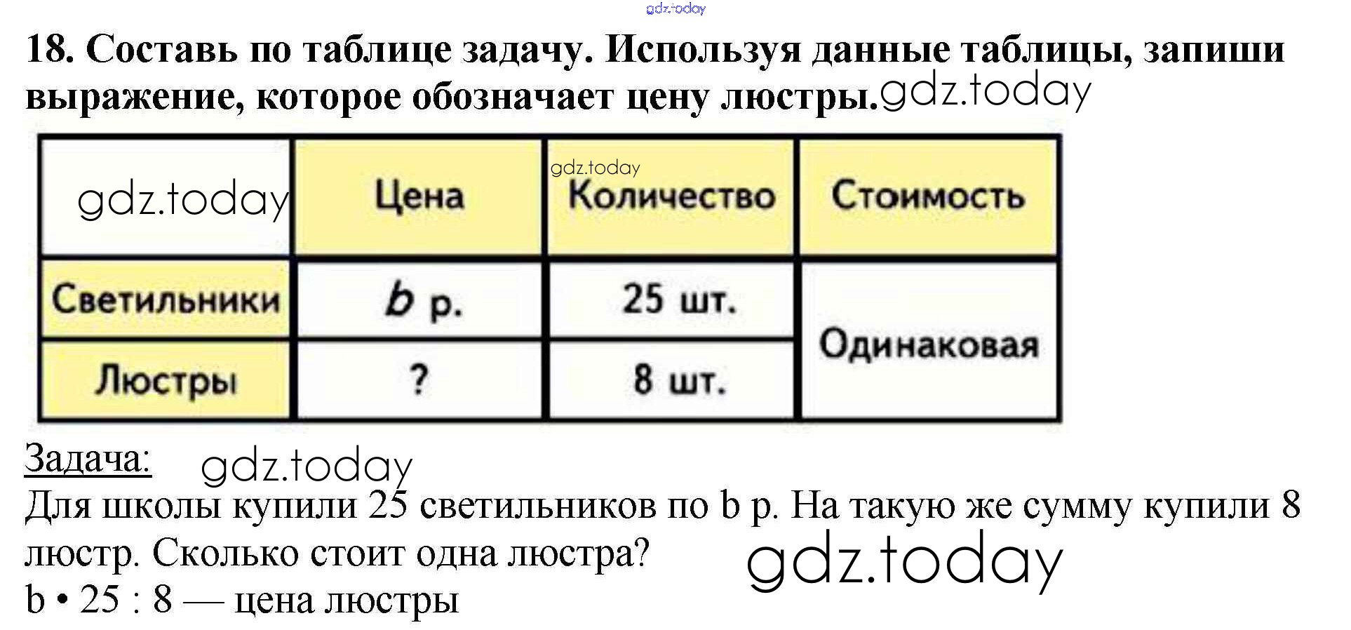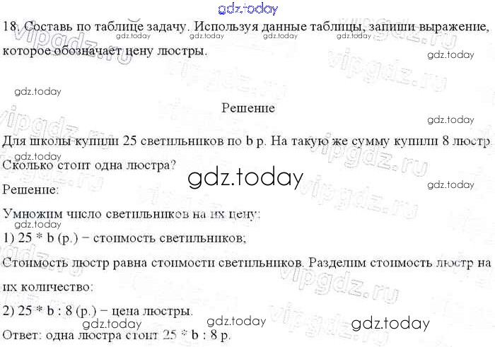 На страницах сайта gdz.today вы найдете учебный и вспомогательный материал, направленный на улучшения знаний школьной программы. ГДЗ - онлайн мир знаний Задачи (стр. 97-102) Итоговое повторение 18 Учебнику по Математике для 4 класса Моро, Бантова Просвещение Школа России 2015