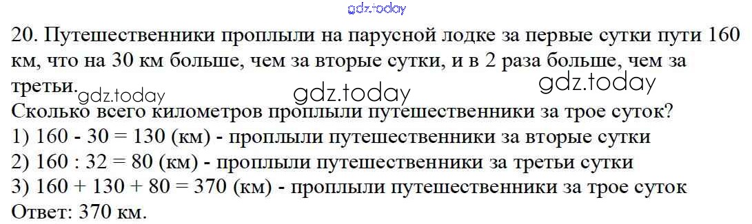 На страницах сайта gdz.today вы найдете учебный и вспомогательный материал, направленный на улучшения знаний школьной программы. ГДЗ - онлайн мир знаний Задачи (стр. 97-102) Итоговое повторение 20 Учебнику по Математике для 4 класса Моро, Бантова Просвещение Школа России 2015