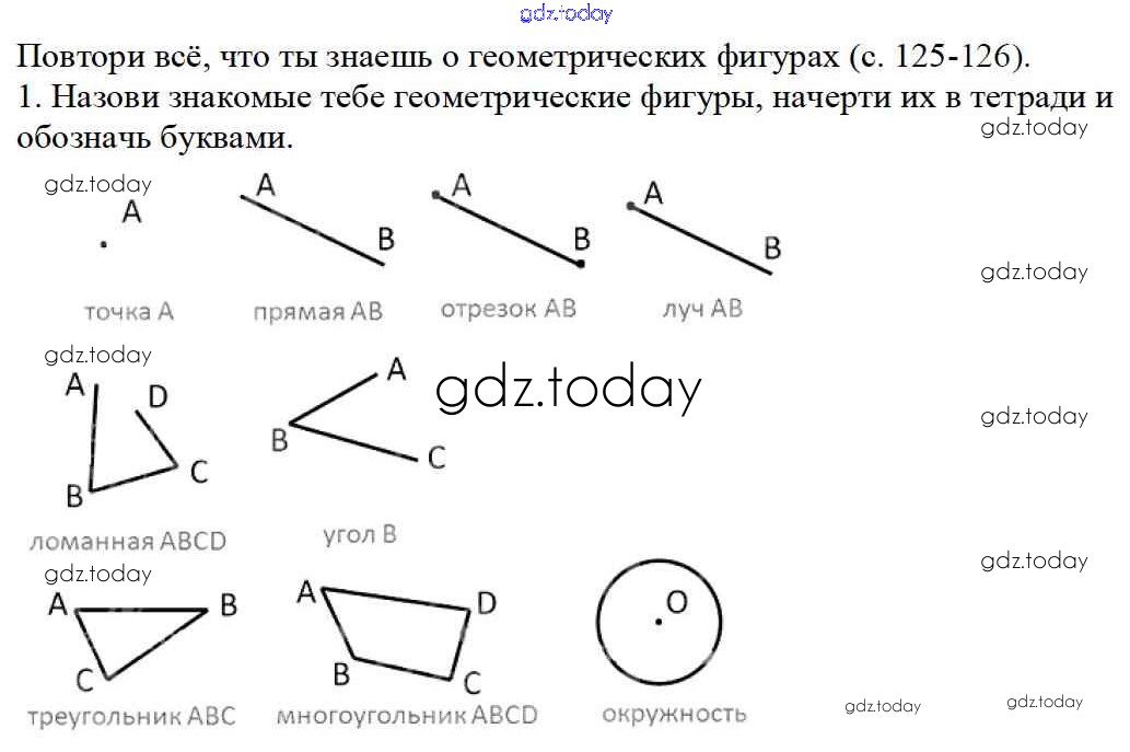 На страницах сайта gdz.today вы найдете учебный и вспомогательный материал, направленный на улучшения знаний школьной программы. ГДЗ - онлайн мир знаний Геометрические фигуры (стр. 96-97) Итоговое повторение 1 Учебнику по Математике для 4 класса Моро, Бантова Просвещение Школа России 2015