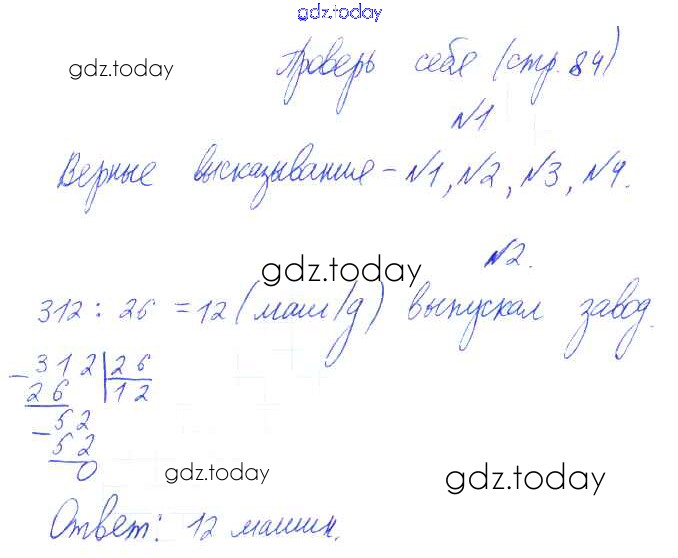 На страницах сайта gdz.today вы найдете учебный и вспомогательный материал, направленный на улучшения знаний школьной программы. ГДЗ - онлайн мир знаний Часть 1 Решение к проверь себя 84 Учебнику по Математике для 4 класса Муравин, Муравина Дрофа Ритм 2014