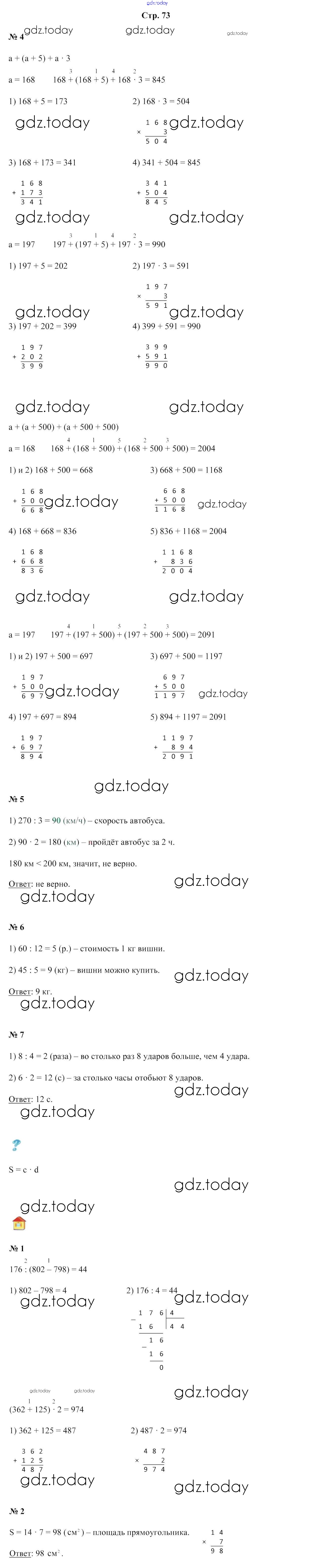 На страницах сайта gdz.today вы найдете учебный и вспомогательный материал, направленный на улучшения знаний школьной программы. ГДЗ - онлайн мир знаний Решение к части 1. Страницы 73 Учебнику по Математике для 4 класса Муравьева, Урбан Национальный институт образования 2018