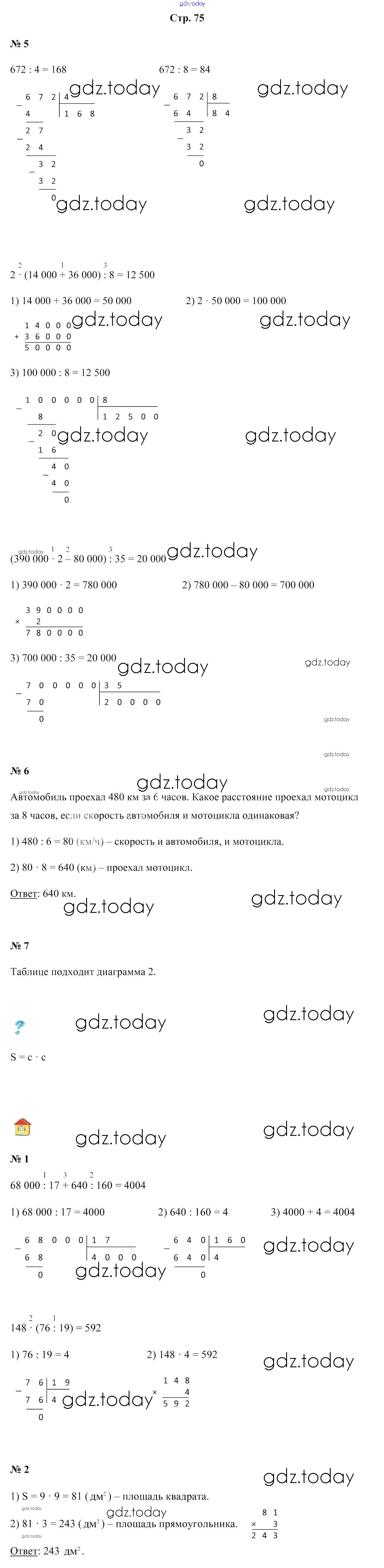 Ответы к Решение к части 1. Страницы 75 Учебнику по Математике для 4 класса Муравьева, Урбан Национальный институт образования 2018