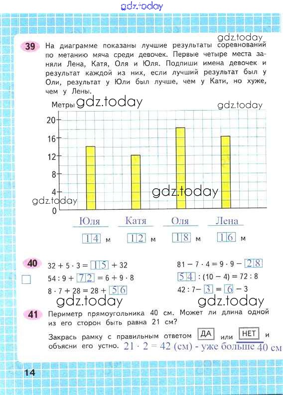 На страницах сайта gdz.today вы найдете учебный и вспомогательный материал, направленный на улучшения знаний школьной программы. ГДЗ - онлайн мир знаний Решение к части 1. Страницы 14 Рабочей тетради по Математике для 4 класса Волкова Просвещение Школа России 2016