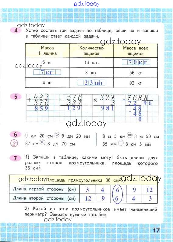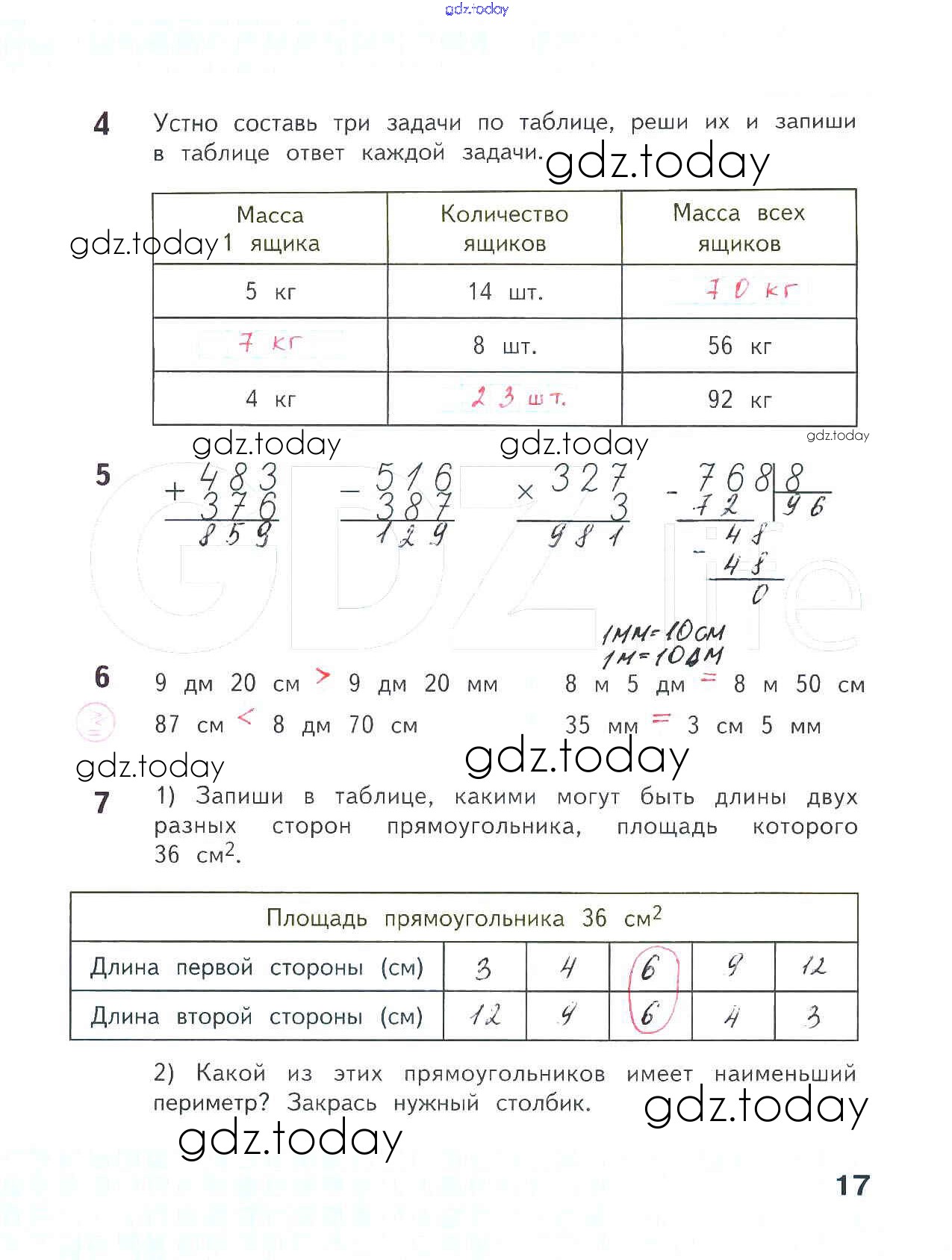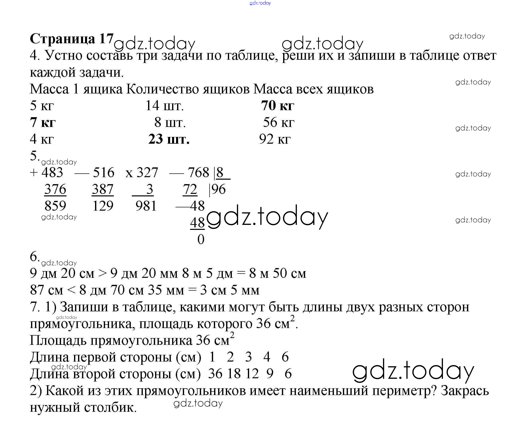 На страницах сайта gdz.today вы найдете учебный и вспомогательный материал, направленный на улучшения знаний школьной программы. ГДЗ - онлайн мир знаний Решение к части 1. Страницы 17 Рабочей тетради по Математике для 4 класса Волкова Просвещение Школа России 2016