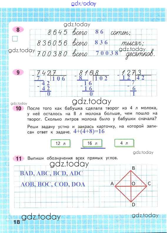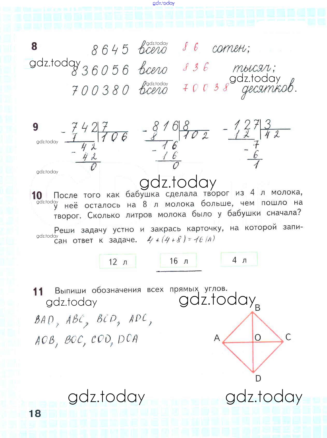 На страницах сайта gdz.today вы найдете учебный и вспомогательный материал, направленный на улучшения знаний школьной программы. ГДЗ - онлайн мир знаний Решение к части 1. Страницы 18 Рабочей тетради по Математике для 4 класса Волкова Просвещение Школа России 2016