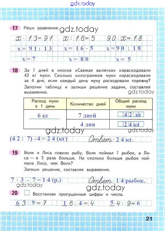 На страницах сайта gdz.today вы найдете учебный и вспомогательный материал, направленный на улучшения знаний школьной программы. ГДЗ - онлайн мир знаний Решение к части 1. Страницы 21 Рабочей тетради по Математике для 4 класса Волкова Просвещение Школа России 2016