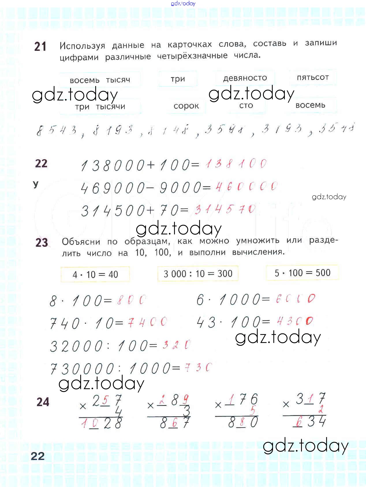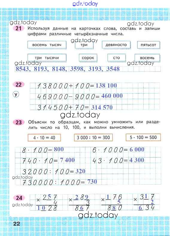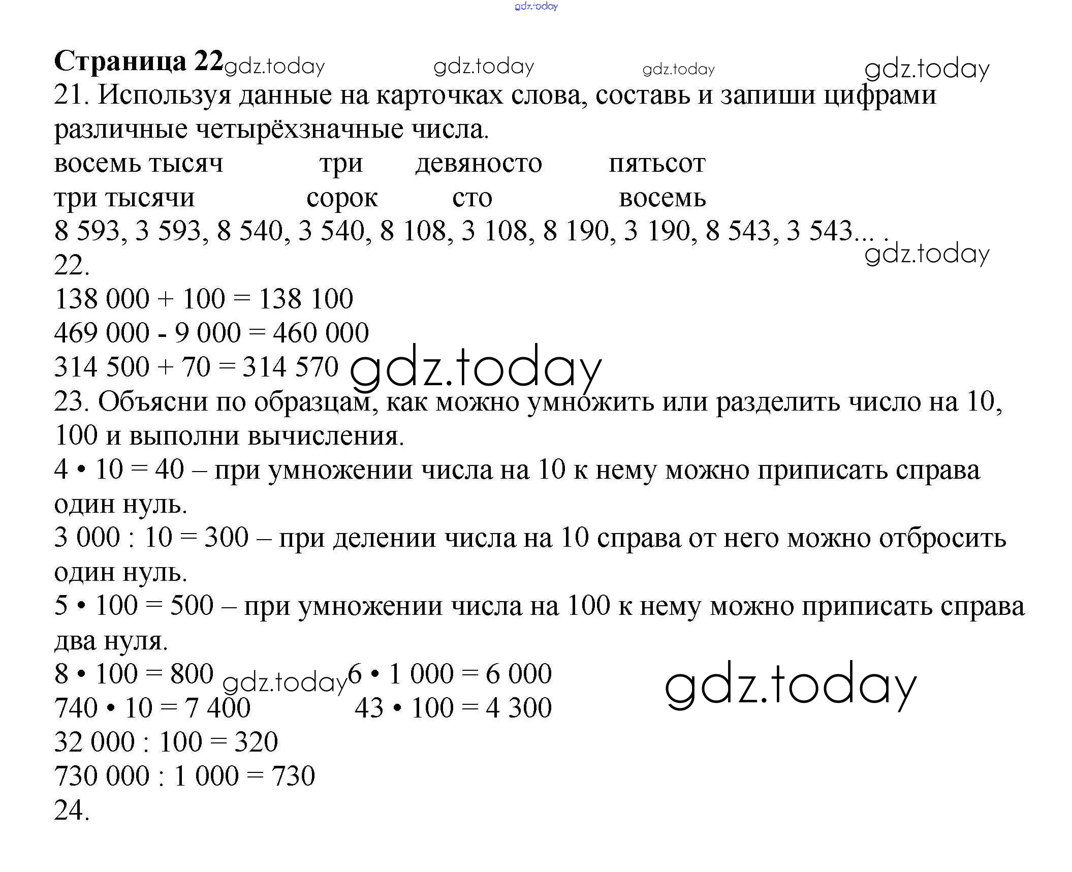 На страницах сайта gdz.today вы найдете учебный и вспомогательный материал, направленный на улучшения знаний школьной программы. ГДЗ - онлайн мир знаний Решение к части 1. Страницы 22 Рабочей тетради по Математике для 4 класса Волкова Просвещение Школа России 2016