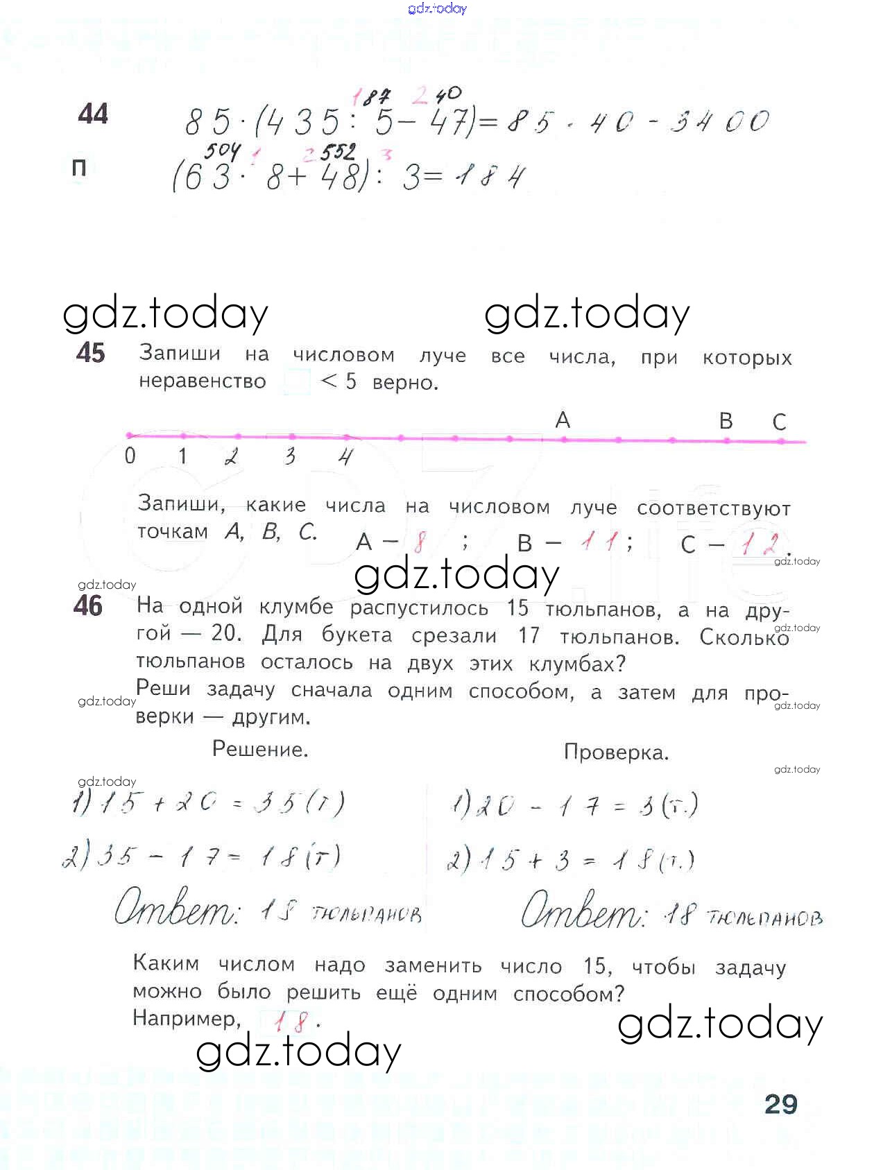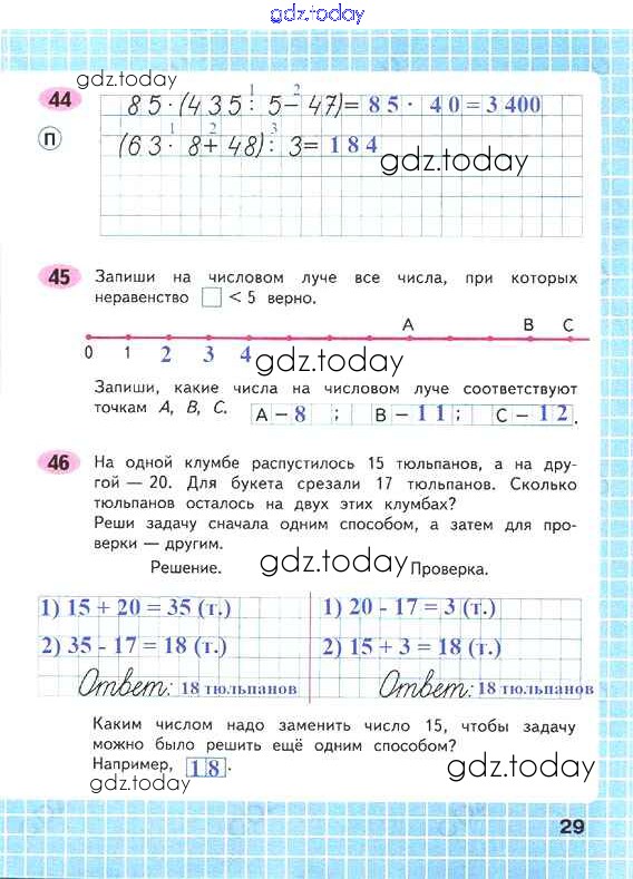 На страницах сайта gdz.today вы найдете учебный и вспомогательный материал, направленный на улучшения знаний школьной программы. ГДЗ - онлайн мир знаний Решение к части 1. Страницы 29 Рабочей тетради по Математике для 4 класса Волкова Просвещение Школа России 2016