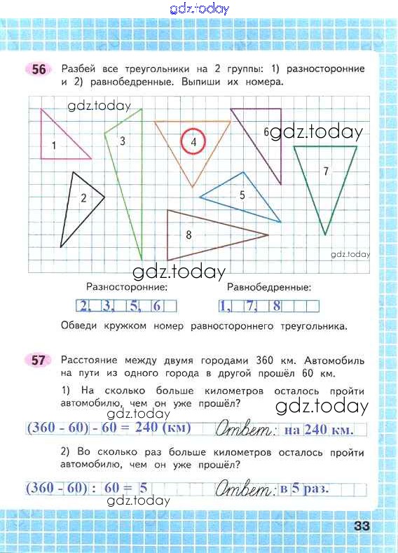 На страницах сайта gdz.today вы найдете учебный и вспомогательный материал, направленный на улучшения знаний школьной программы. ГДЗ - онлайн мир знаний Решение к части 1. Страницы 33 Рабочей тетради по Математике для 4 класса Волкова Просвещение Школа России 2016