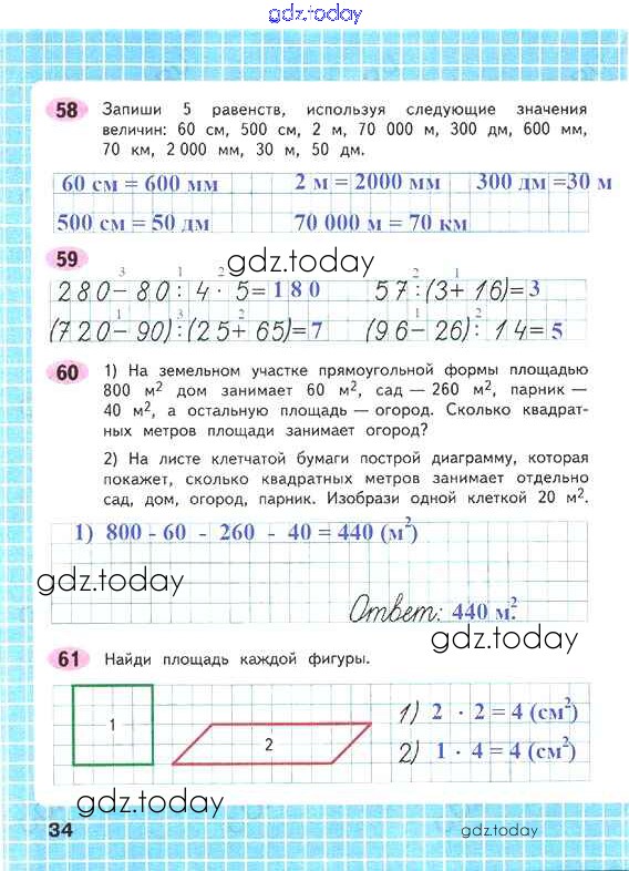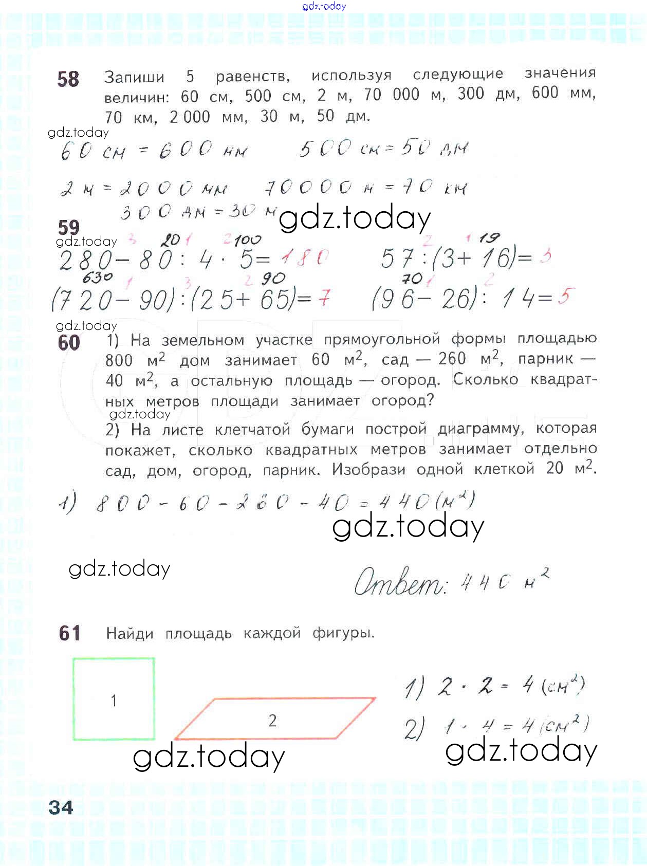 На страницах сайта gdz.today вы найдете учебный и вспомогательный материал, направленный на улучшения знаний школьной программы. ГДЗ - онлайн мир знаний Решение к части 1. Страницы 34 Рабочей тетради по Математике для 4 класса Волкова Просвещение Школа России 2016