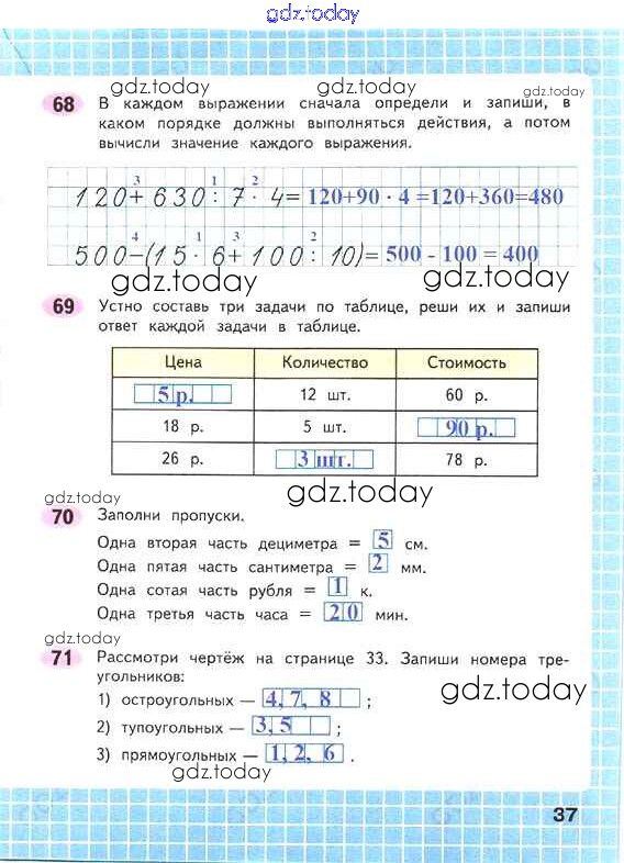 На страницах сайта gdz.today вы найдете учебный и вспомогательный материал, направленный на улучшения знаний школьной программы. ГДЗ - онлайн мир знаний Решение к части 1. Страницы 37 Рабочей тетради по Математике для 4 класса Волкова Просвещение Школа России 2016