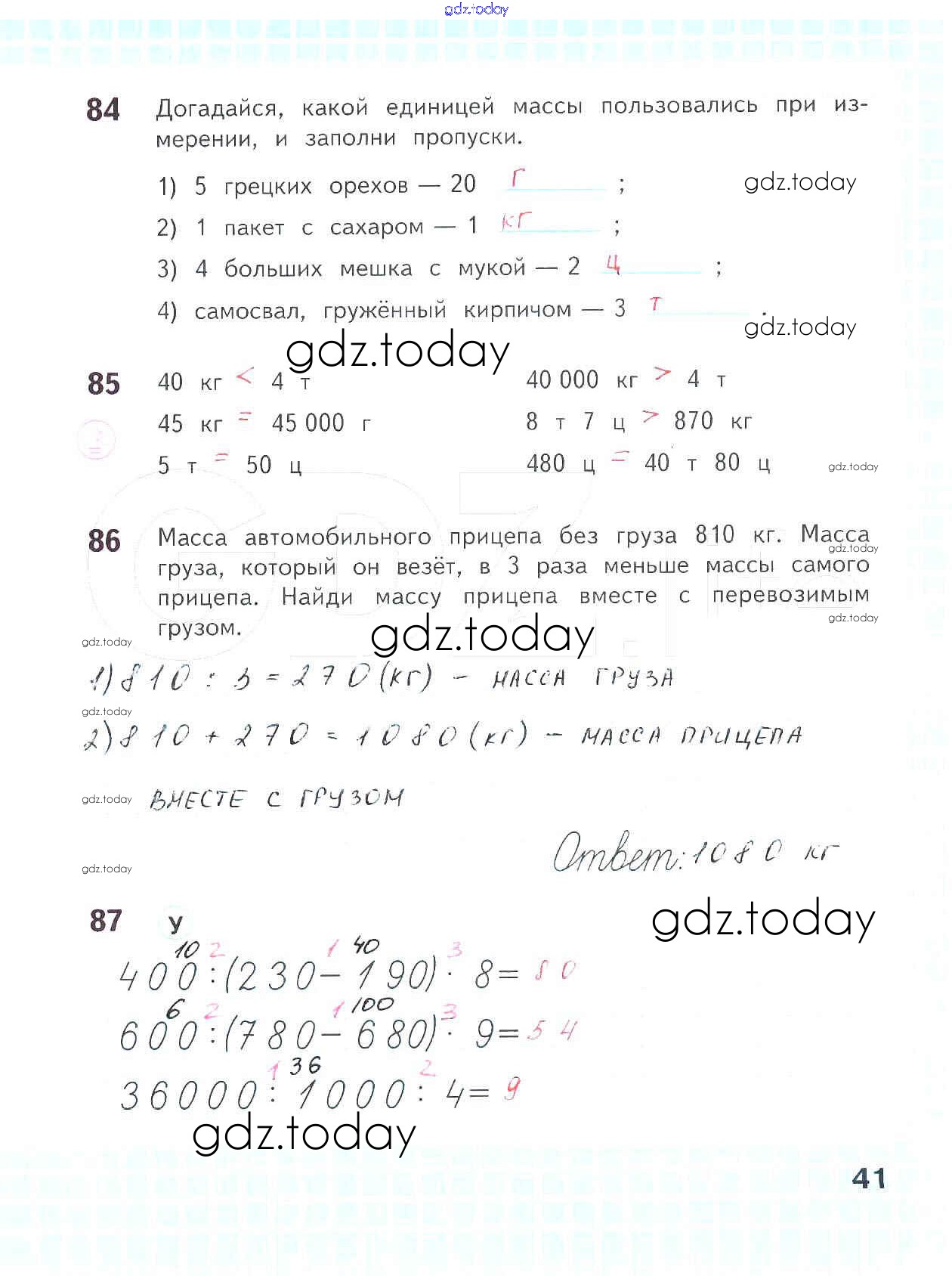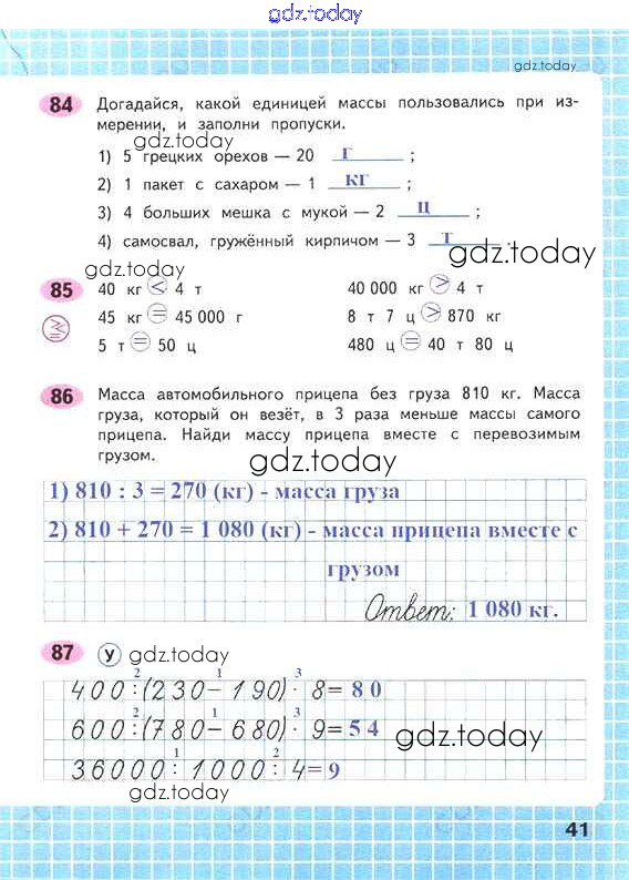 На страницах сайта gdz.today вы найдете учебный и вспомогательный материал, направленный на улучшения знаний школьной программы. ГДЗ - онлайн мир знаний Решение к части 1. Страницы 41 Рабочей тетради по Математике для 4 класса Волкова Просвещение Школа России 2016