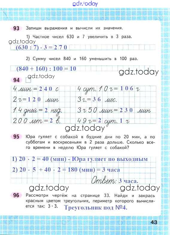 На страницах сайта gdz.today вы найдете учебный и вспомогательный материал, направленный на улучшения знаний школьной программы. ГДЗ - онлайн мир знаний Решение к части 1. Страницы 43 Рабочей тетради по Математике для 4 класса Волкова Просвещение Школа России 2016