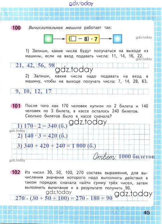 На страницах сайта gdz.today вы найдете учебный и вспомогательный материал, направленный на улучшения знаний школьной программы. ГДЗ - онлайн мир знаний Решение к части 1. Страницы 45 Рабочей тетради по Математике для 4 класса Волкова Просвещение Школа России 2016