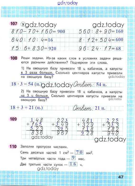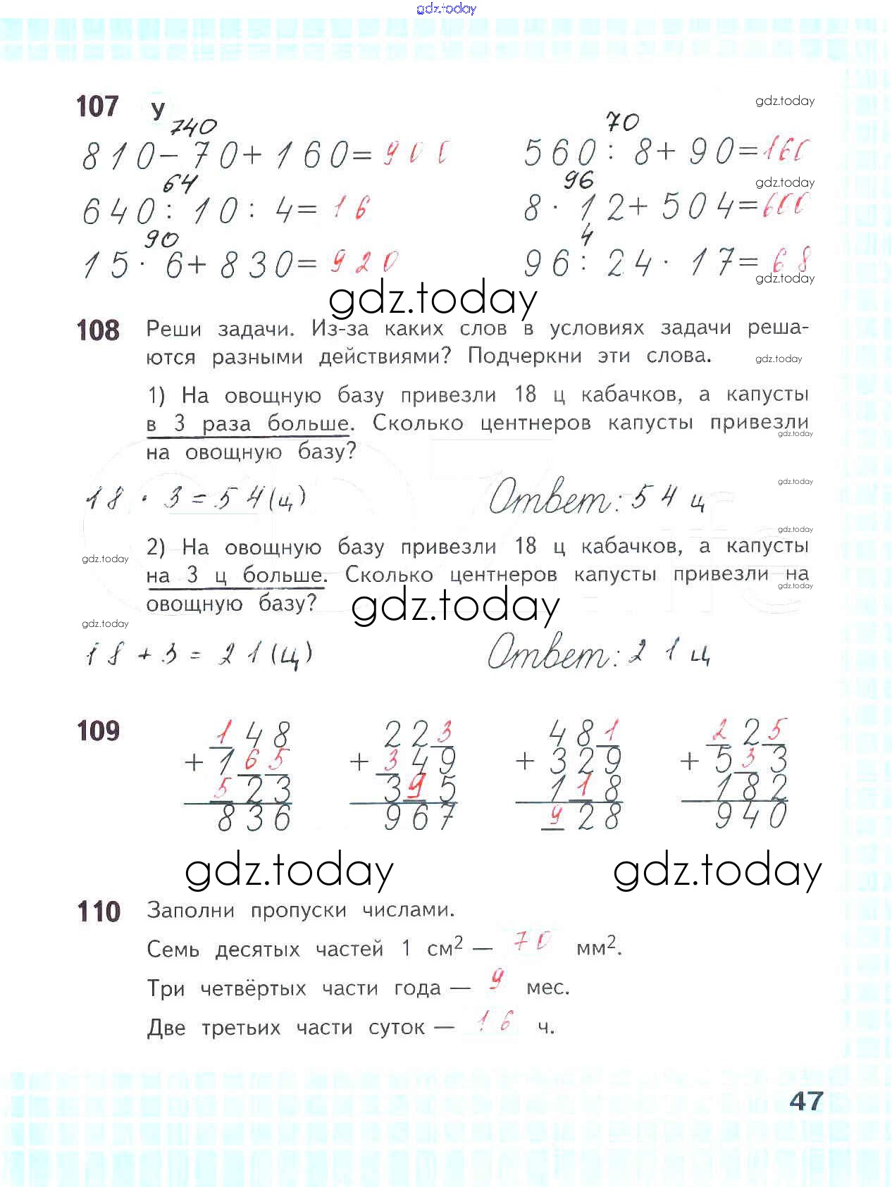 На страницах сайта gdz.today вы найдете учебный и вспомогательный материал, направленный на улучшения знаний школьной программы. ГДЗ - онлайн мир знаний Решение к части 1. Страницы 47 Рабочей тетради по Математике для 4 класса Волкова Просвещение Школа России 2016