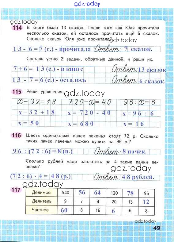 На страницах сайта gdz.today вы найдете учебный и вспомогательный материал, направленный на улучшения знаний школьной программы. ГДЗ - онлайн мир знаний Решение к части 1. Страницы 49 Рабочей тетради по Математике для 4 класса Волкова Просвещение Школа России 2016