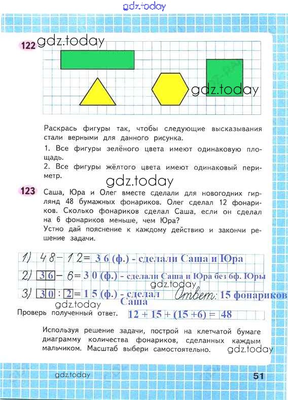 На страницах сайта gdz.today вы найдете учебный и вспомогательный материал, направленный на улучшения знаний школьной программы. ГДЗ - онлайн мир знаний Решение к части 1. Страницы 51 Рабочей тетради по Математике для 4 класса Волкова Просвещение Школа России 2016