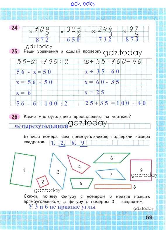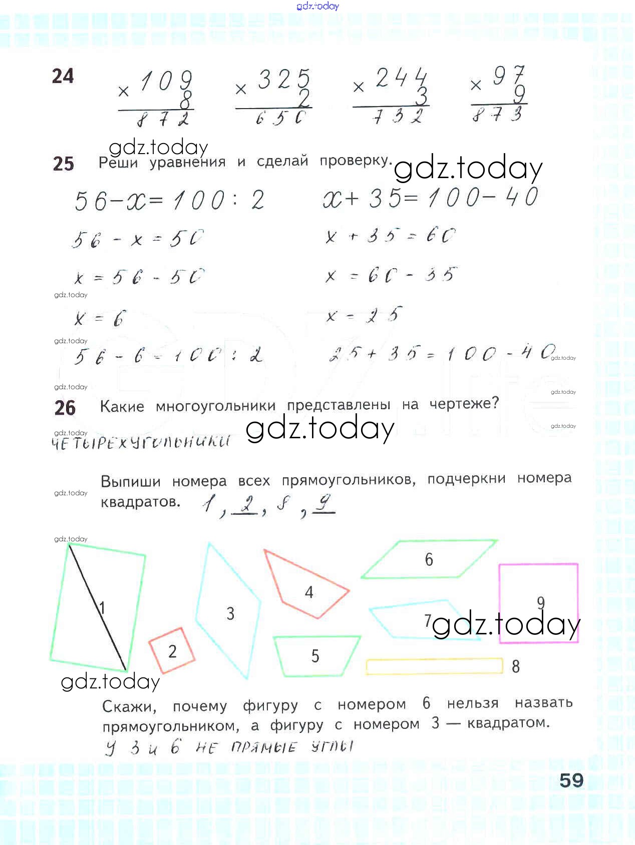 На страницах сайта gdz.today вы найдете учебный и вспомогательный материал, направленный на улучшения знаний школьной программы. ГДЗ - онлайн мир знаний Решение к части 1. Страницы 59 Рабочей тетради по Математике для 4 класса Волкова Просвещение Школа России 2016