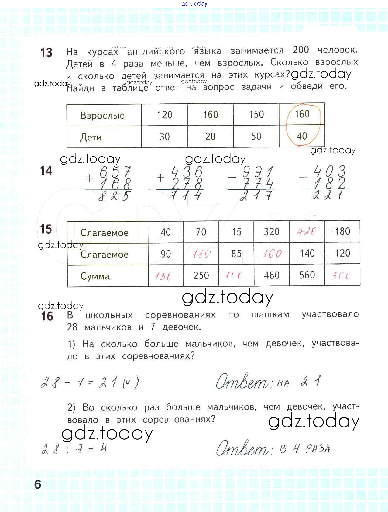 На страницах сайта gdz.today вы найдете учебный и вспомогательный материал, направленный на улучшения знаний школьной программы. ГДЗ - онлайн мир знаний Решение к части 1. Страницы 6 Рабочей тетради по Математике для 4 класса Волкова Просвещение Школа России 2016