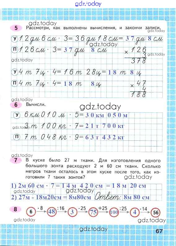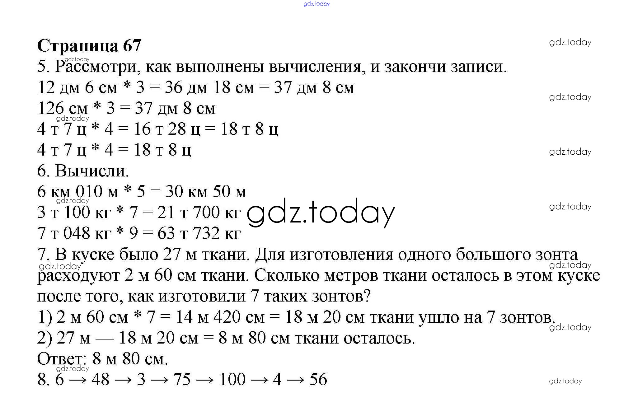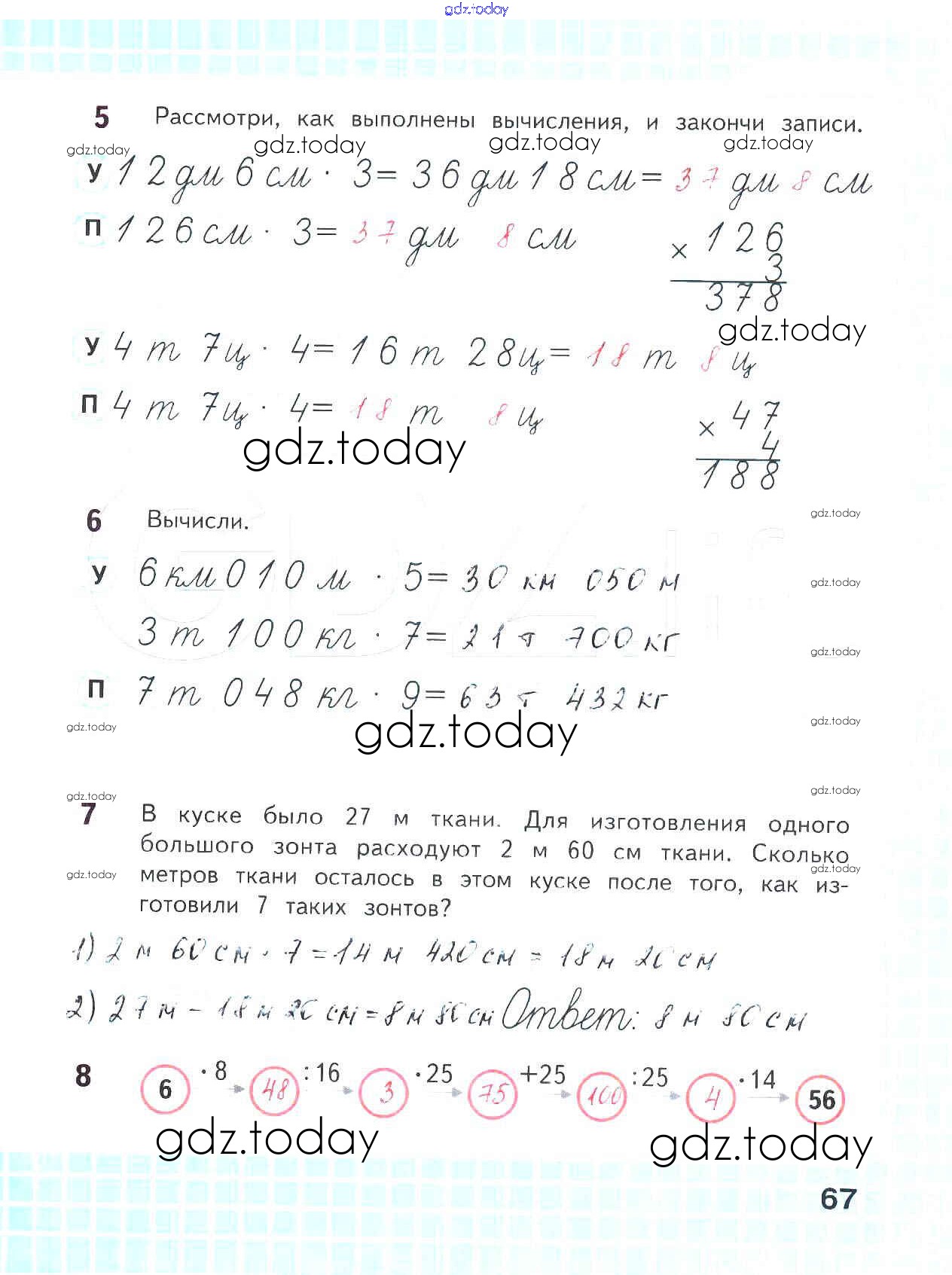 На страницах сайта gdz.today вы найдете учебный и вспомогательный материал, направленный на улучшения знаний школьной программы. ГДЗ - онлайн мир знаний Решение к части 1. Страницы 67 Рабочей тетради по Математике для 4 класса Волкова Просвещение Школа России 2016