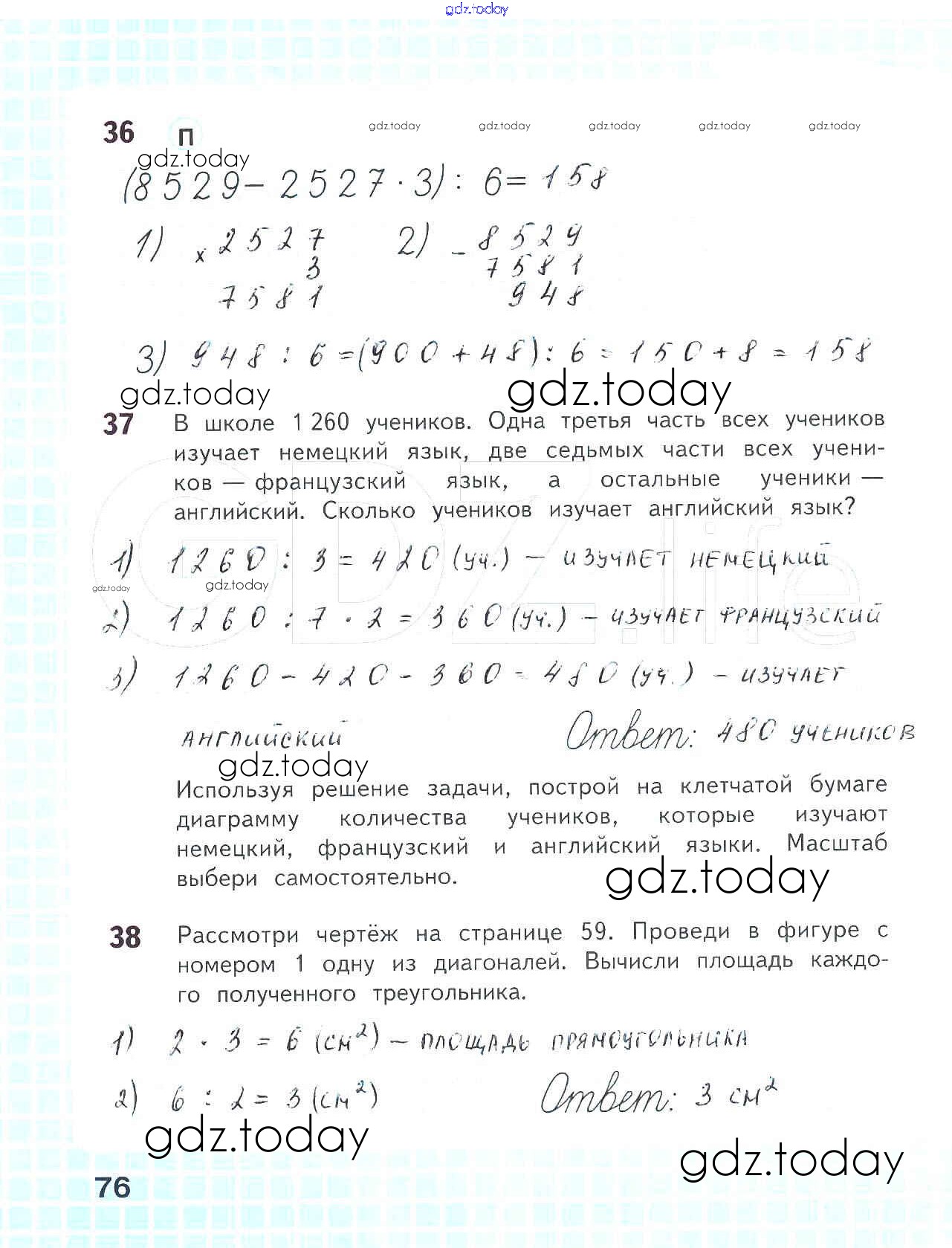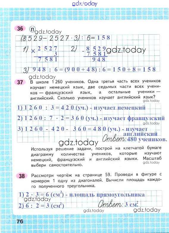 На страницах сайта gdz.today вы найдете учебный и вспомогательный материал, направленный на улучшения знаний школьной программы. ГДЗ - онлайн мир знаний Решение к части 1. Страницы 76 Рабочей тетради по Математике для 4 класса Волкова Просвещение Школа России 2016