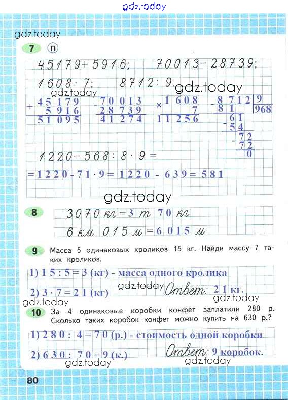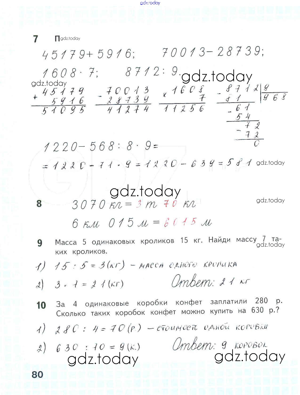 На страницах сайта gdz.today вы найдете учебный и вспомогательный материал, направленный на улучшения знаний школьной программы. ГДЗ - онлайн мир знаний Решение к части 1. Страницы 80 Рабочей тетради по Математике для 4 класса Волкова Просвещение Школа России 2016