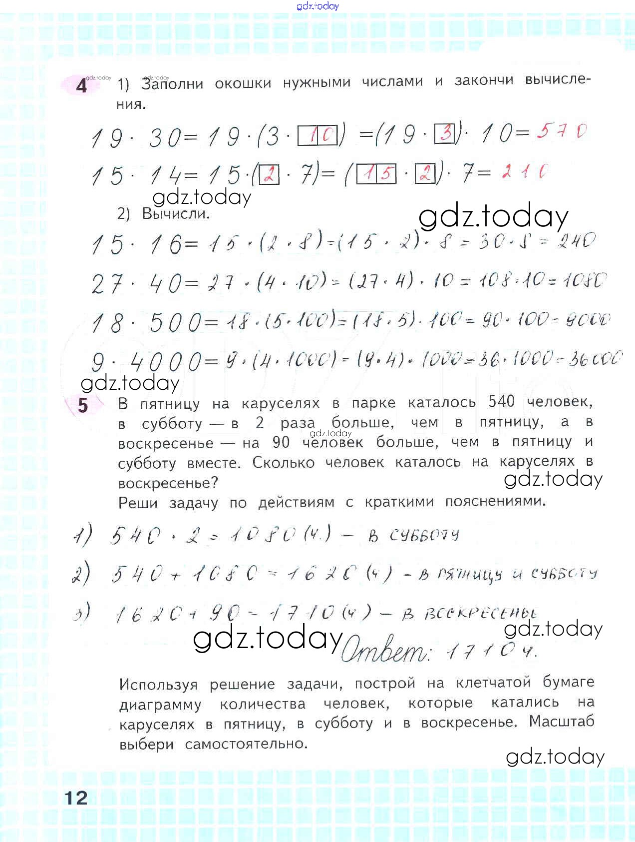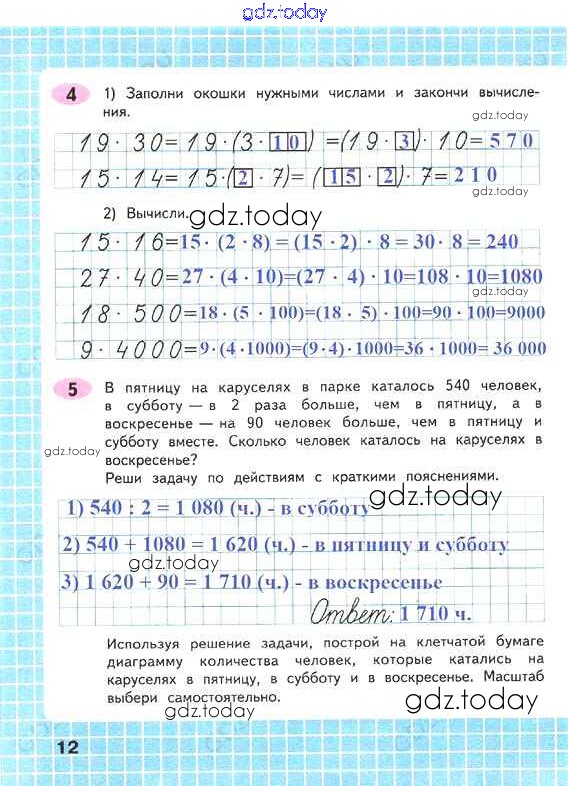 На страницах сайта gdz.today вы найдете учебный и вспомогательный материал, направленный на улучшения знаний школьной программы. ГДЗ - онлайн мир знаний Решение к части 2. Страницы 12 Рабочей тетради по Математике для 4 класса Волкова Просвещение Школа России 2016
