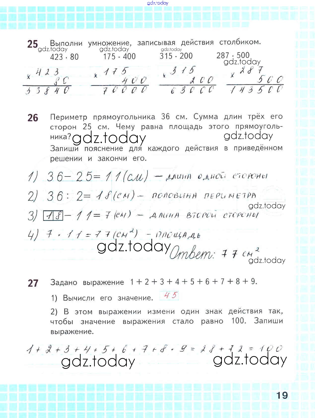 На страницах сайта gdz.today вы найдете учебный и вспомогательный материал, направленный на улучшения знаний школьной программы. ГДЗ - онлайн мир знаний Решение к части 2. Страницы 19 Рабочей тетради по Математике для 4 класса Волкова Просвещение Школа России 2016