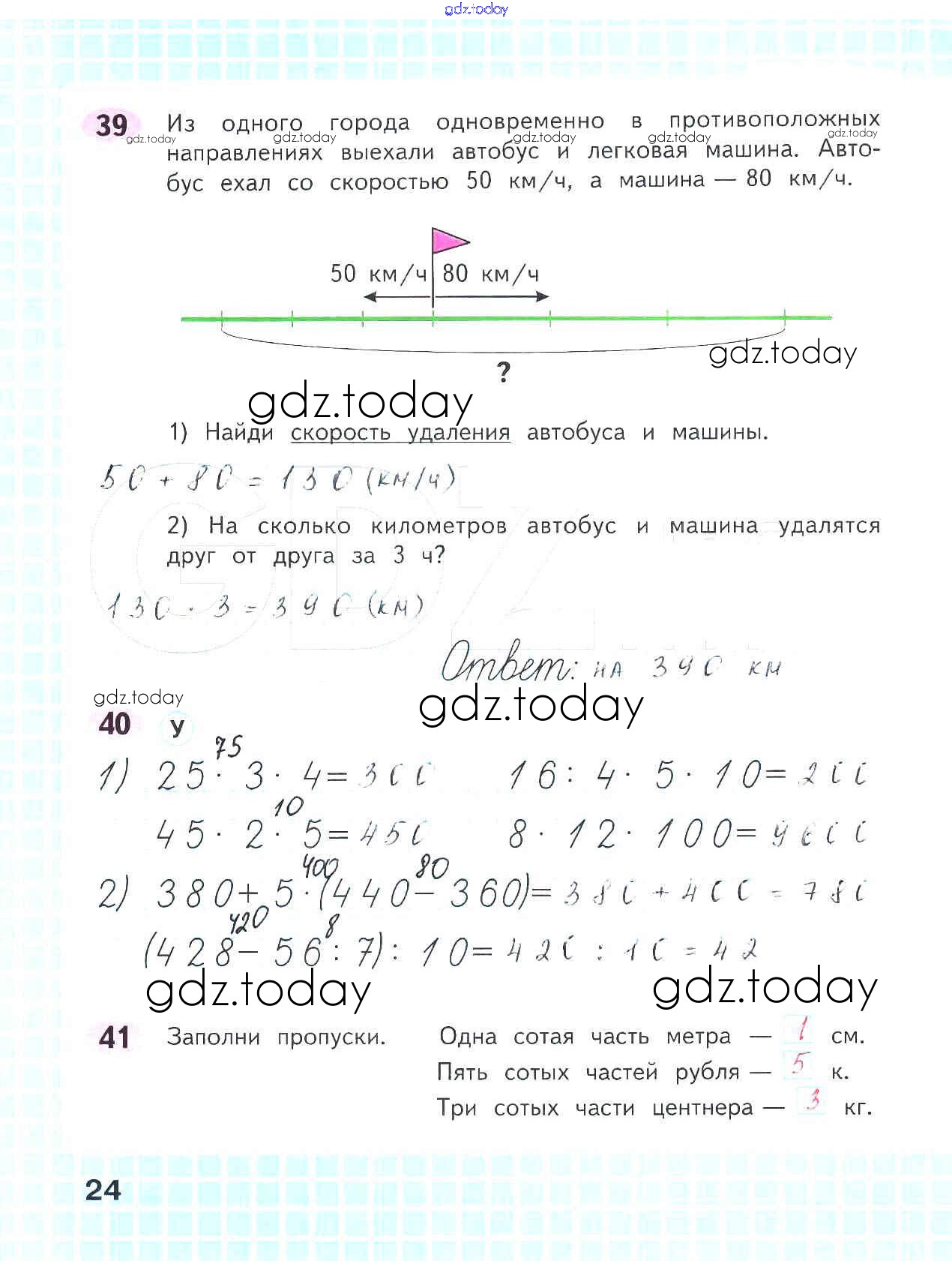 На страницах сайта gdz.today вы найдете учебный и вспомогательный материал, направленный на улучшения знаний школьной программы. ГДЗ - онлайн мир знаний Решение к части 2. Страницы 24 Рабочей тетради по Математике для 4 класса Волкова Просвещение Школа России 2016