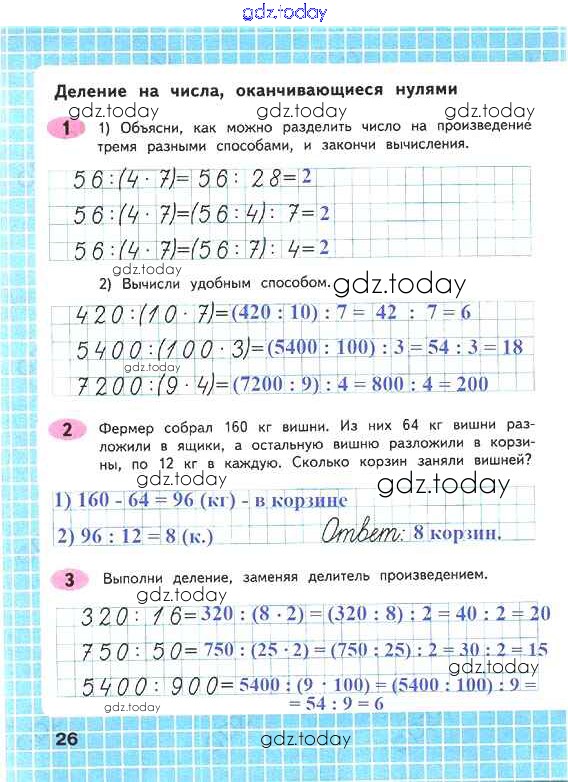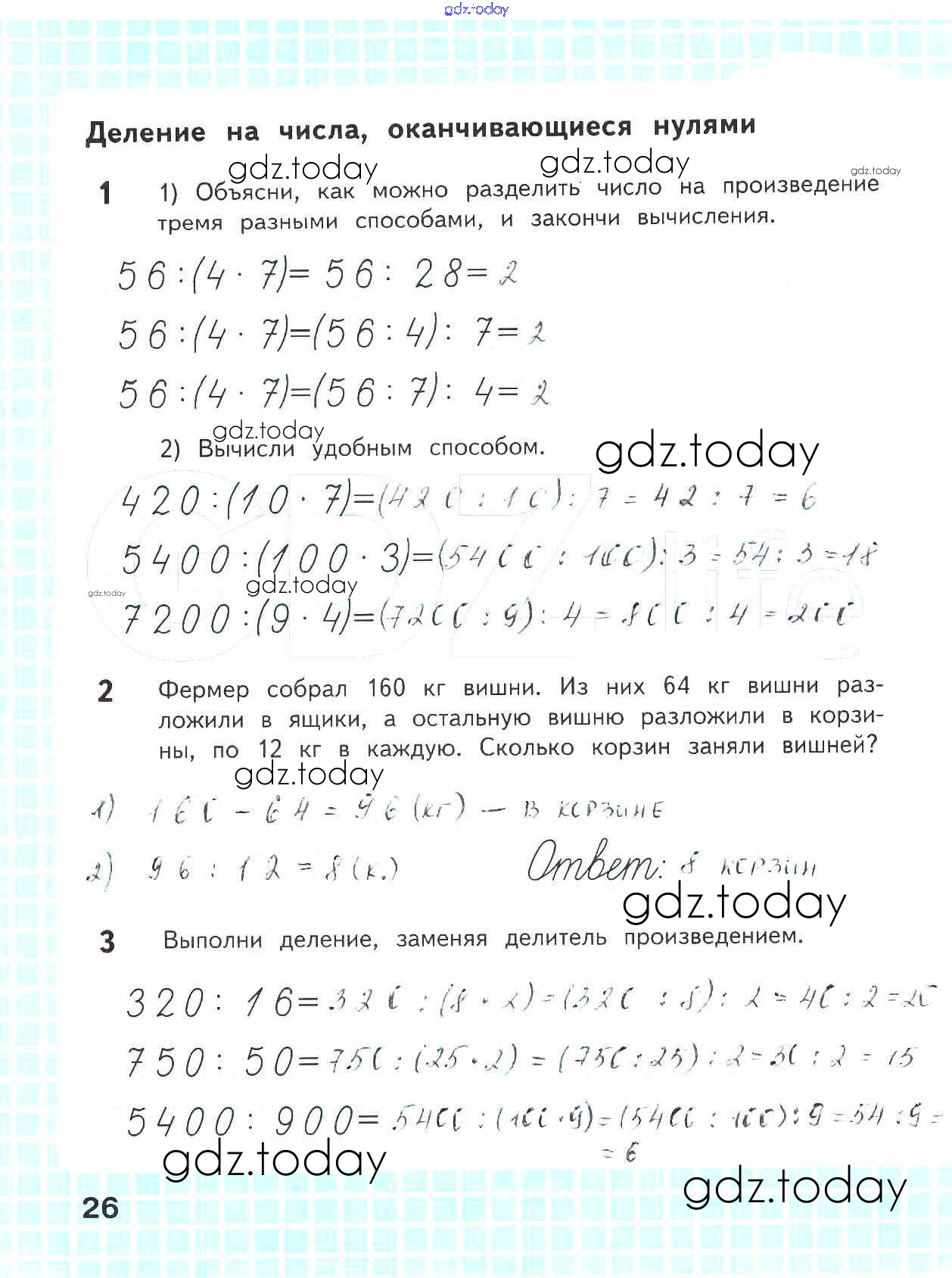 На страницах сайта gdz.today вы найдете учебный и вспомогательный материал, направленный на улучшения знаний школьной программы. ГДЗ - онлайн мир знаний Решение к части 2. Страницы 26 Рабочей тетради по Математике для 4 класса Волкова Просвещение Школа России 2016