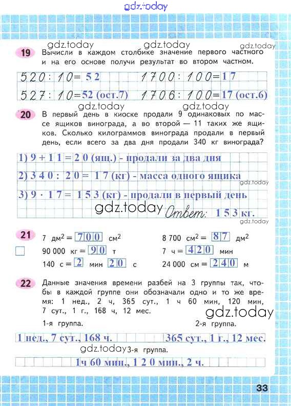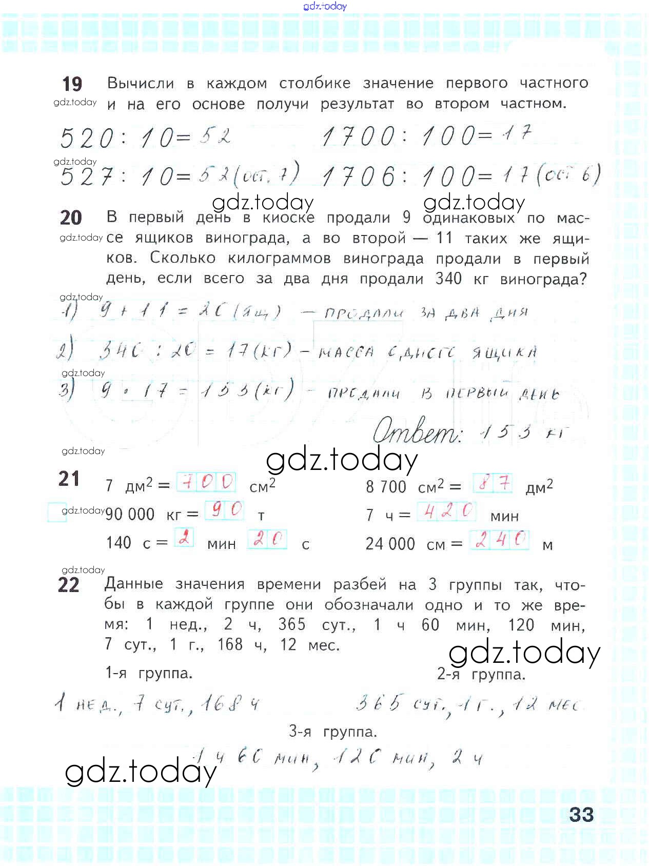 На страницах сайта gdz.today вы найдете учебный и вспомогательный материал, направленный на улучшения знаний школьной программы. ГДЗ - онлайн мир знаний Решение к части 2. Страницы 33 Рабочей тетради по Математике для 4 класса Волкова Просвещение Школа России 2016