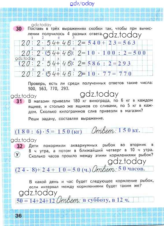 На страницах сайта gdz.today вы найдете учебный и вспомогательный материал, направленный на улучшения знаний школьной программы. ГДЗ - онлайн мир знаний Решение к части 2. Страницы 36 Рабочей тетради по Математике для 4 класса Волкова Просвещение Школа России 2016