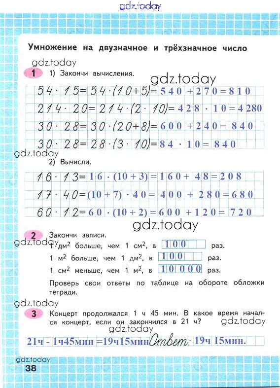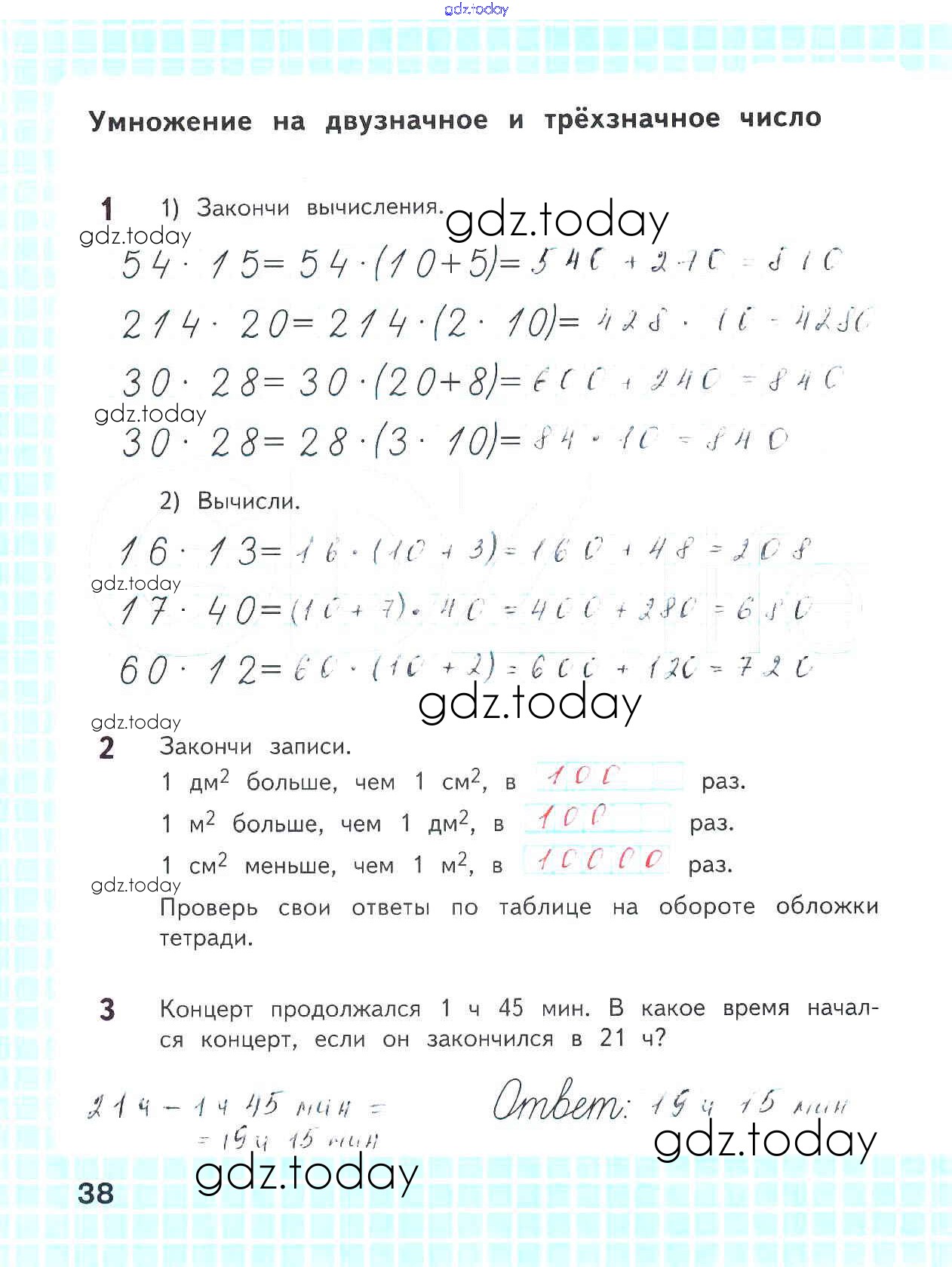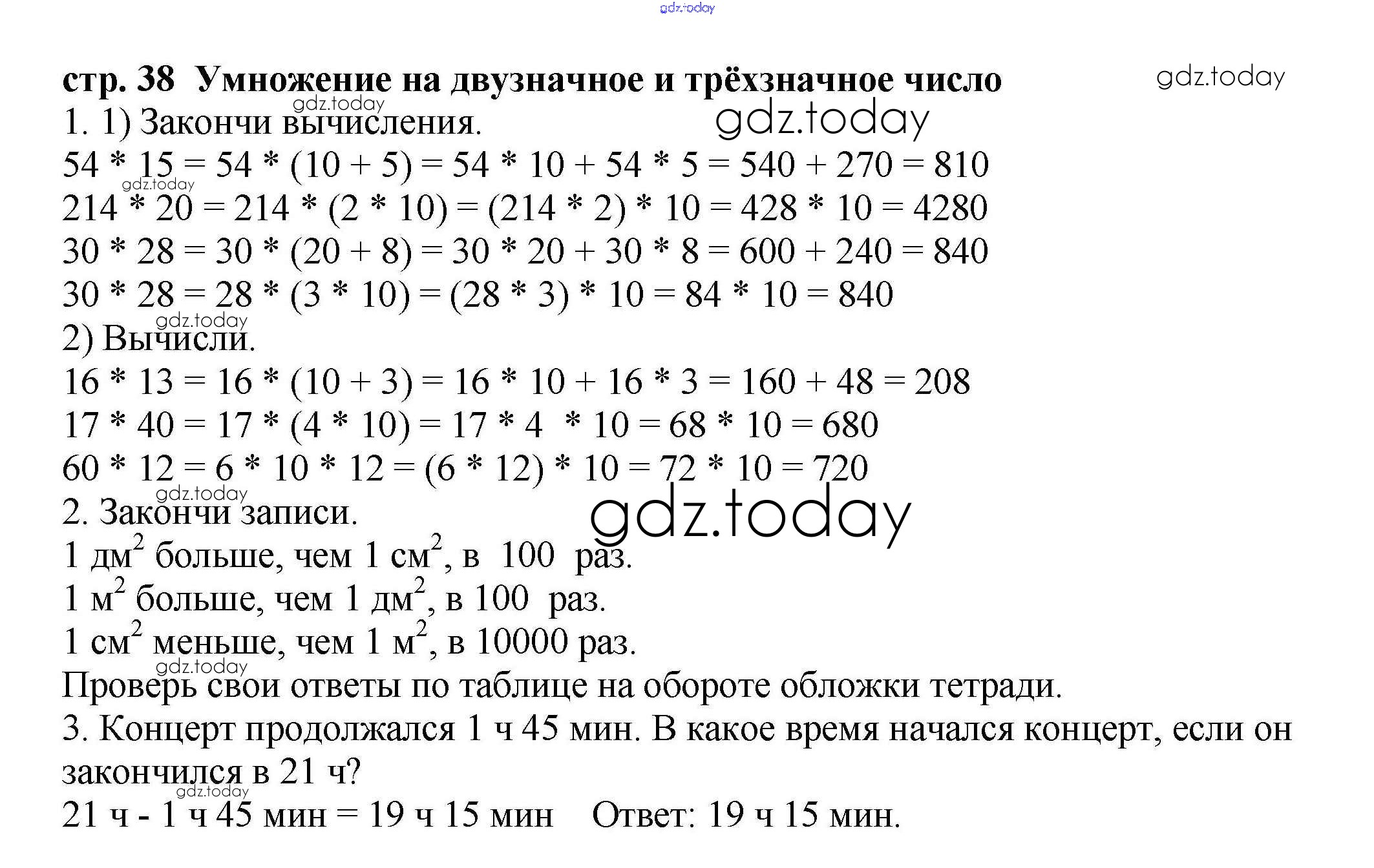 На страницах сайта gdz.today вы найдете учебный и вспомогательный материал, направленный на улучшения знаний школьной программы. ГДЗ - онлайн мир знаний Решение к части 2. Страницы 38 Рабочей тетради по Математике для 4 класса Волкова Просвещение Школа России 2016
