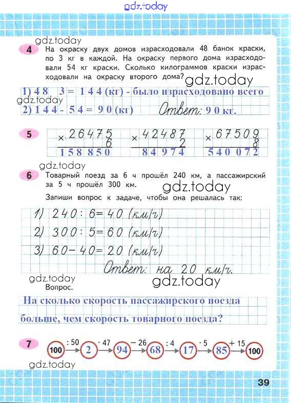 Ответы к Решение к части 2. Страницы 39 Рабочей тетради по Математике для 4 класса Волкова Просвещение Школа России 2016