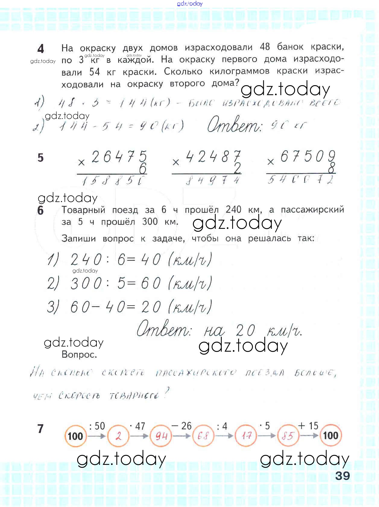 На страницах сайта gdz.today вы найдете учебный и вспомогательный материал, направленный на улучшения знаний школьной программы. ГДЗ - онлайн мир знаний Решение к части 2. Страницы 39 Рабочей тетради по Математике для 4 класса Волкова Просвещение Школа России 2016