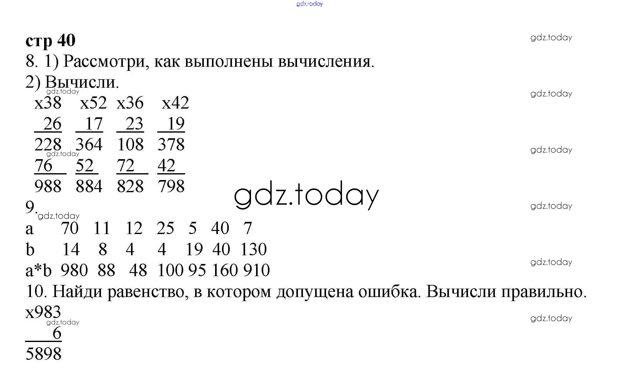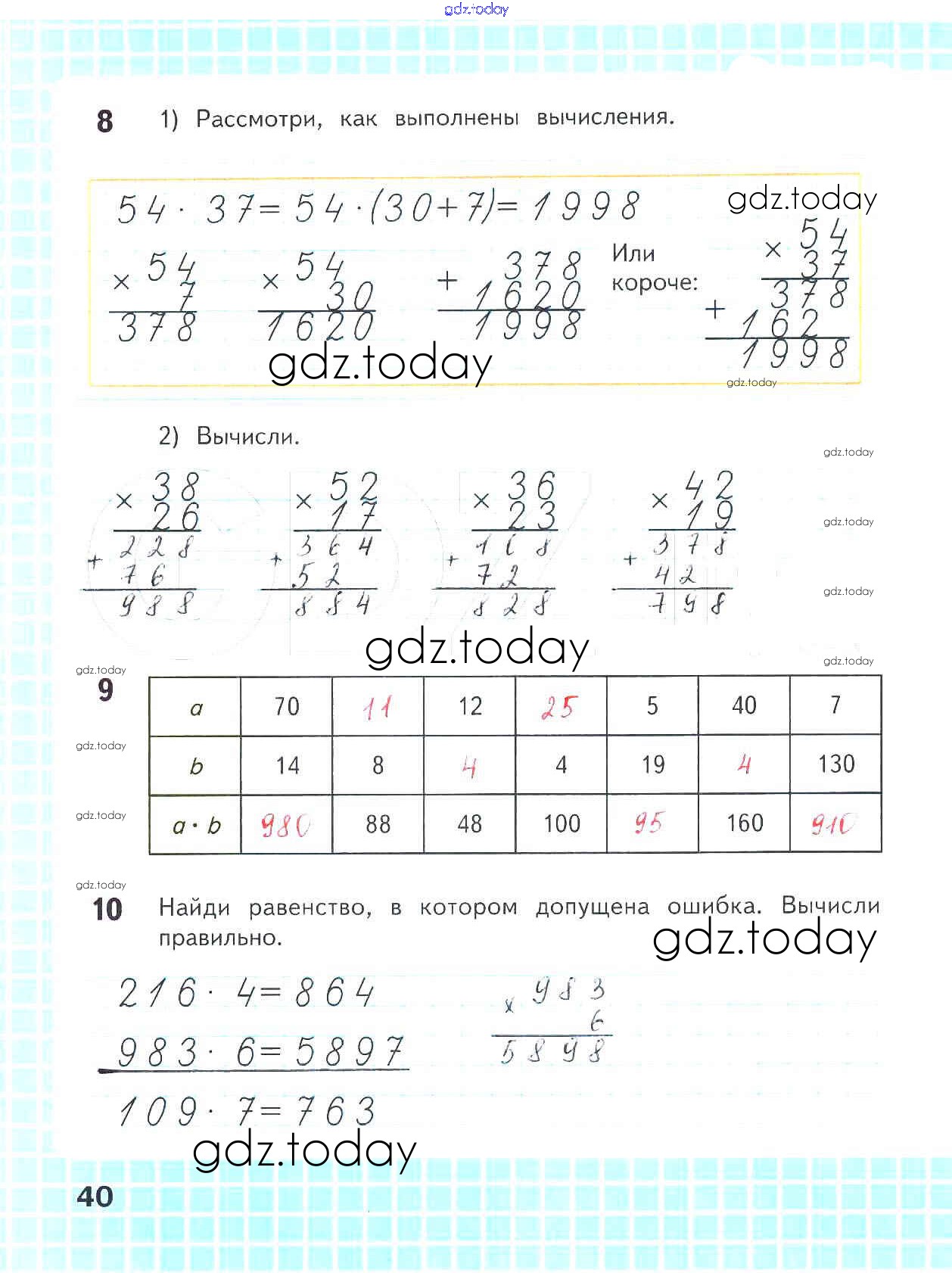 На страницах сайта gdz.today вы найдете учебный и вспомогательный материал, направленный на улучшения знаний школьной программы. ГДЗ - онлайн мир знаний Решение к части 2. Страницы 40 Рабочей тетради по Математике для 4 класса Волкова Просвещение Школа России 2016
