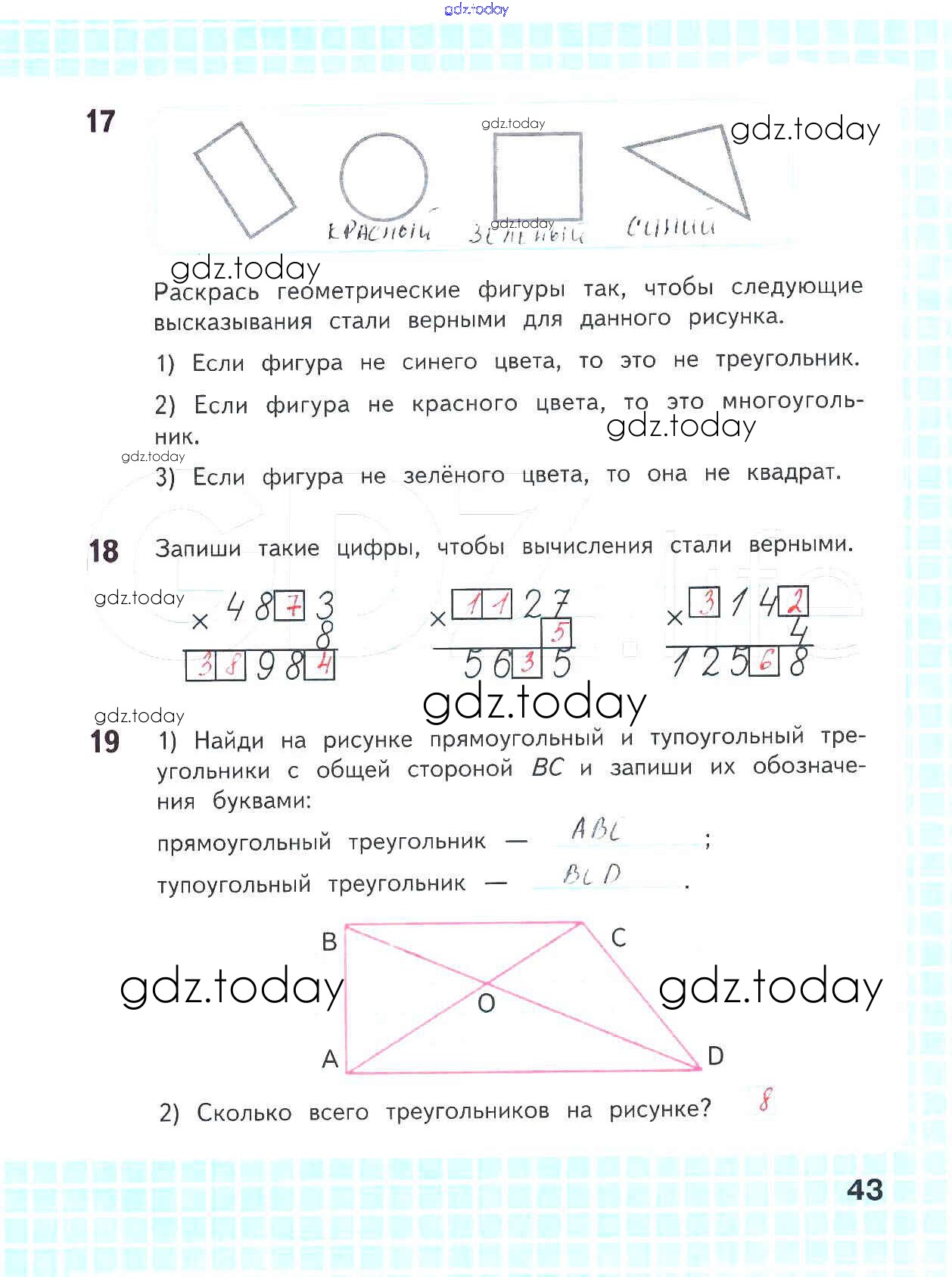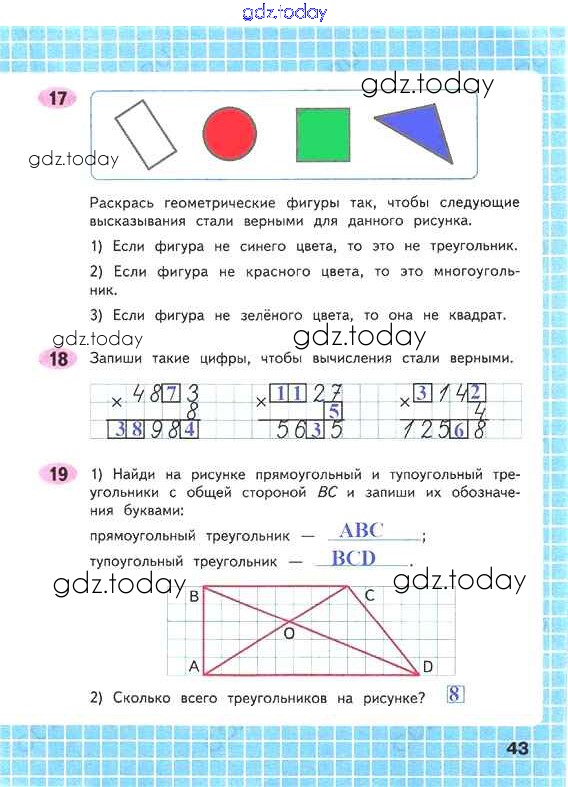На страницах сайта gdz.today вы найдете учебный и вспомогательный материал, направленный на улучшения знаний школьной программы. ГДЗ - онлайн мир знаний Решение к части 2. Страницы 43 Рабочей тетради по Математике для 4 класса Волкова Просвещение Школа России 2016
