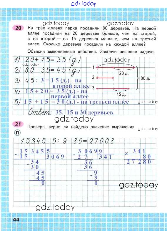 На страницах сайта gdz.today вы найдете учебный и вспомогательный материал, направленный на улучшения знаний школьной программы. ГДЗ - онлайн мир знаний Решение к части 2. Страницы 44 Рабочей тетради по Математике для 4 класса Волкова Просвещение Школа России 2016