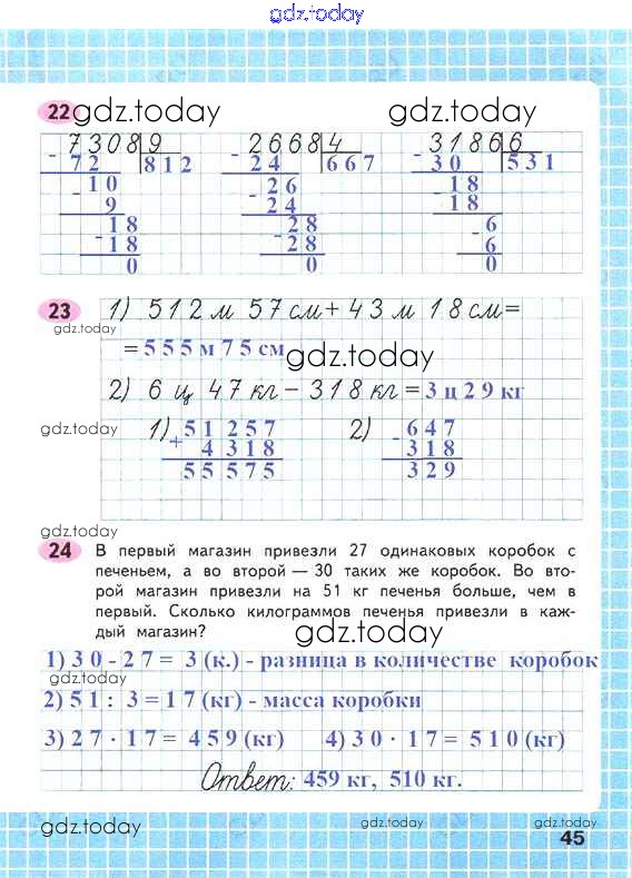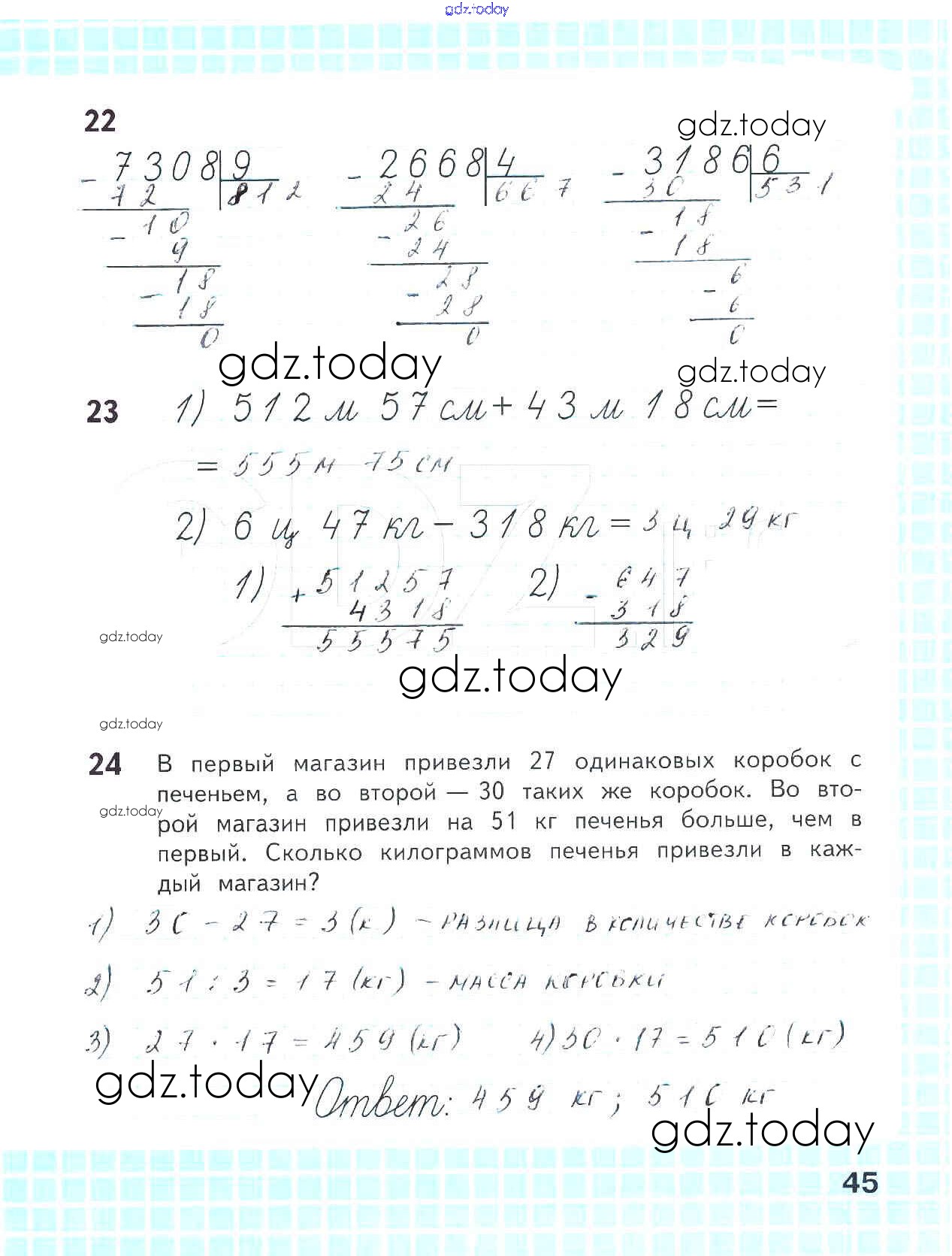 На страницах сайта gdz.today вы найдете учебный и вспомогательный материал, направленный на улучшения знаний школьной программы. ГДЗ - онлайн мир знаний Решение к части 2. Страницы 45 Рабочей тетради по Математике для 4 класса Волкова Просвещение Школа России 2016