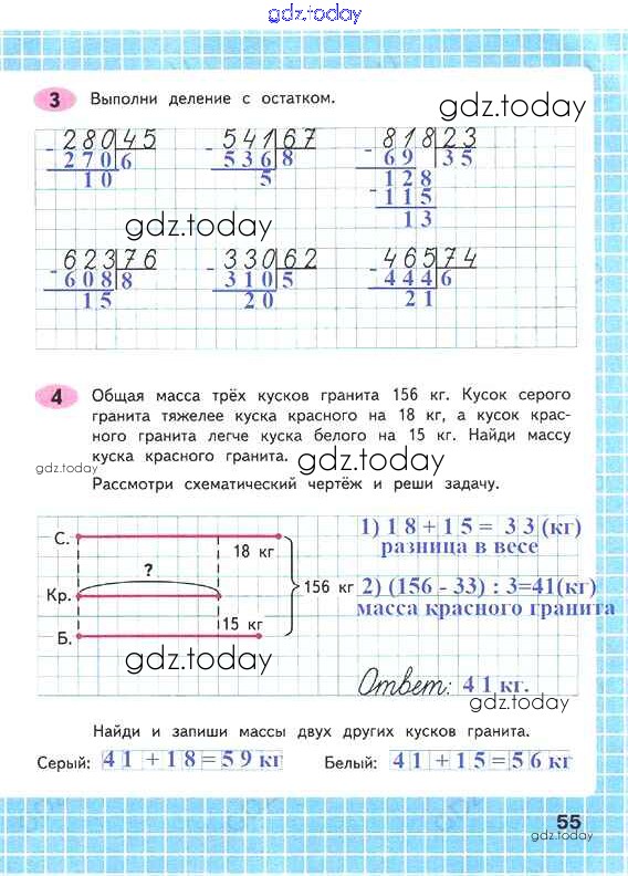 Ответы к Решение к части 2. Страницы 55 Рабочей тетради по Математике для 4 класса Волкова Просвещение Школа России 2016