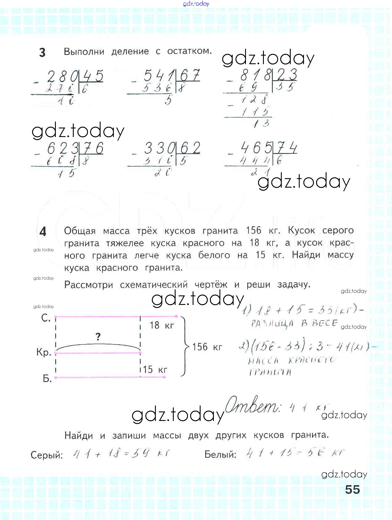 На страницах сайта gdz.today вы найдете учебный и вспомогательный материал, направленный на улучшения знаний школьной программы. ГДЗ - онлайн мир знаний Решение к части 2. Страницы 55 Рабочей тетради по Математике для 4 класса Волкова Просвещение Школа России 2016