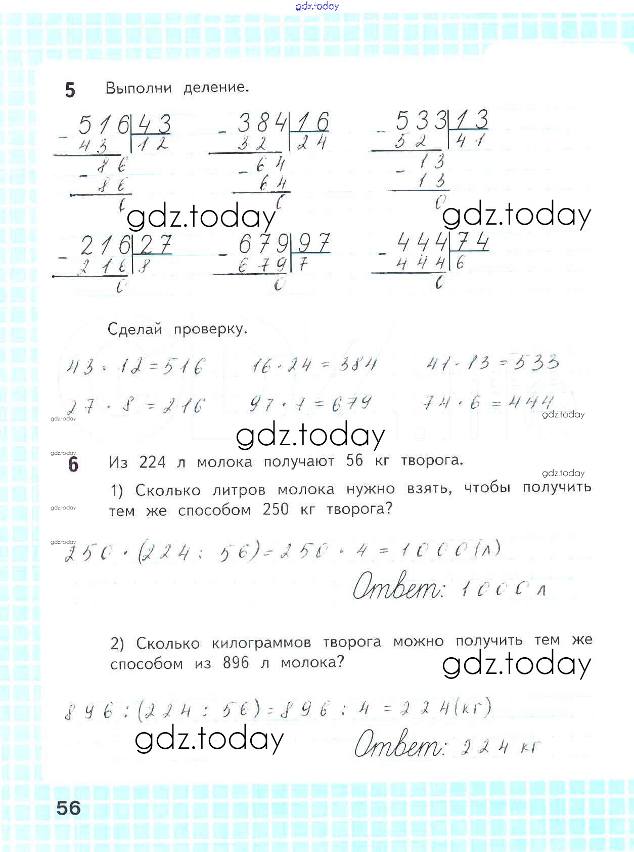 На страницах сайта gdz.today вы найдете учебный и вспомогательный материал, направленный на улучшения знаний школьной программы. ГДЗ - онлайн мир знаний Решение к части 2. Страницы 56 Рабочей тетради по Математике для 4 класса Волкова Просвещение Школа России 2016