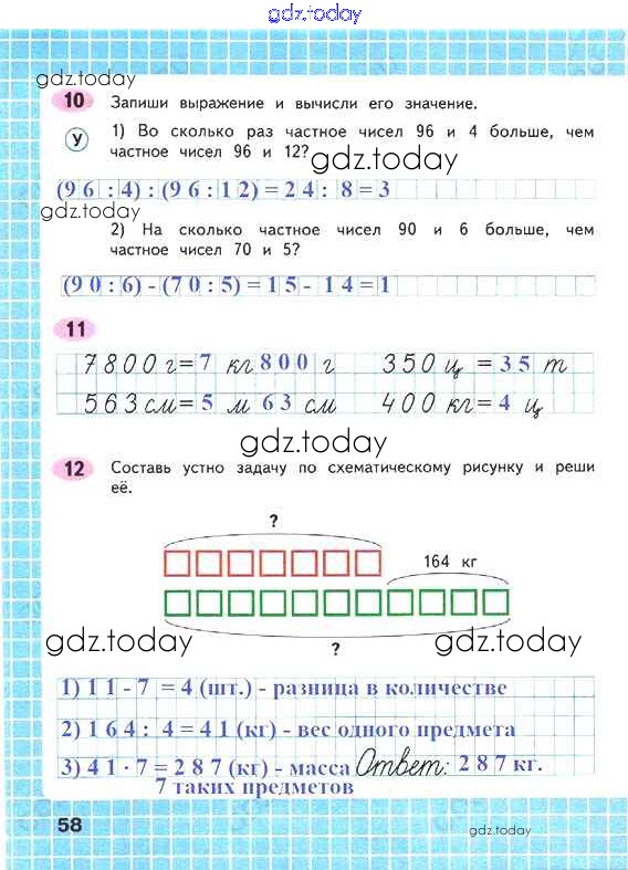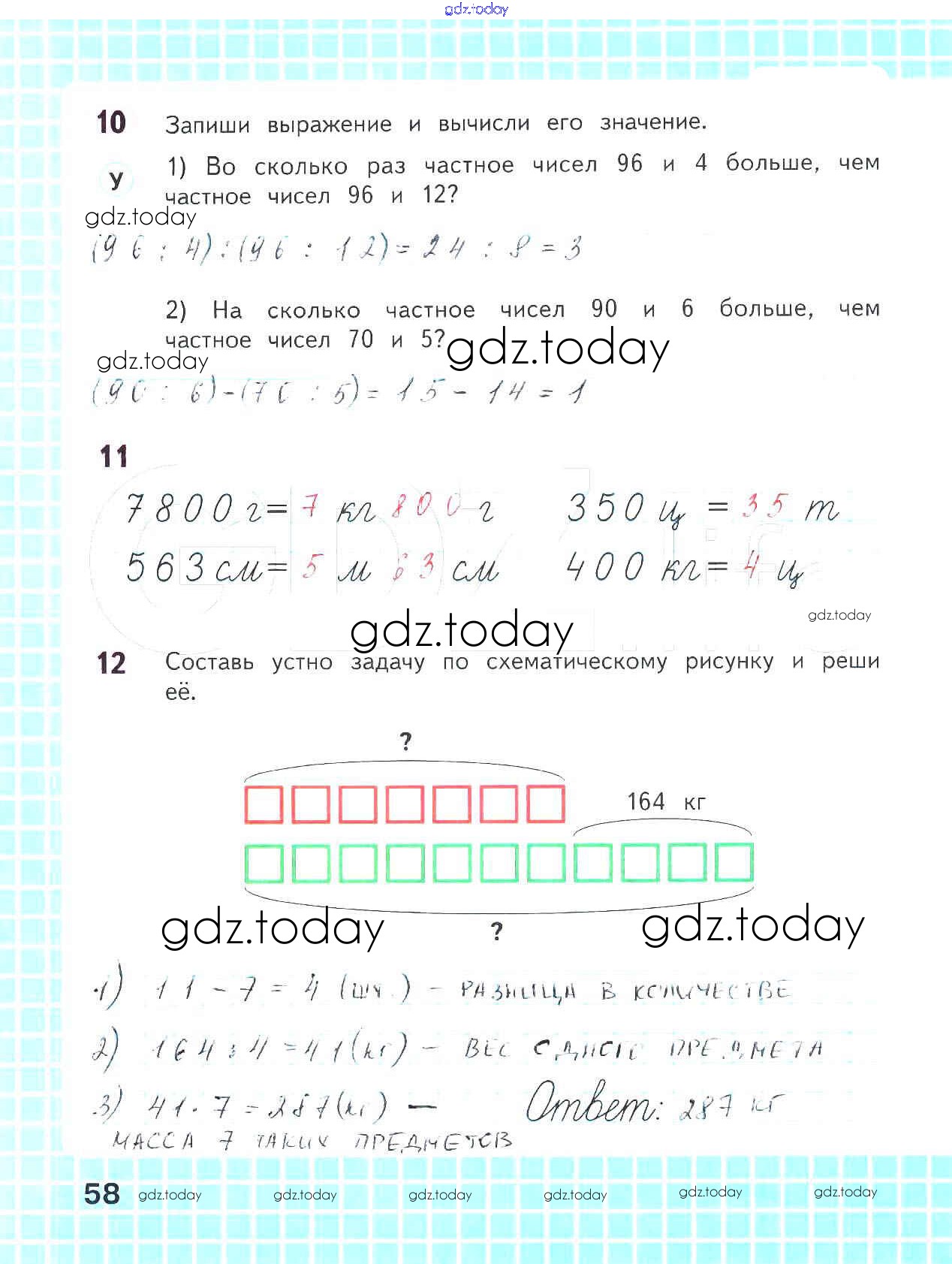 На страницах сайта gdz.today вы найдете учебный и вспомогательный материал, направленный на улучшения знаний школьной программы. ГДЗ - онлайн мир знаний Решение к части 2. Страницы 58 Рабочей тетради по Математике для 4 класса Волкова Просвещение Школа России 2016