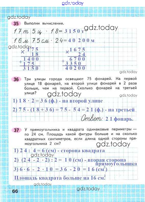 На страницах сайта gdz.today вы найдете учебный и вспомогательный материал, направленный на улучшения знаний школьной программы. ГДЗ - онлайн мир знаний Решение к части 2. Страницы 66 Рабочей тетради по Математике для 4 класса Волкова Просвещение Школа России 2016