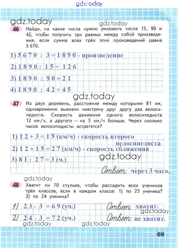 На страницах сайта gdz.today вы найдете учебный и вспомогательный материал, направленный на улучшения знаний школьной программы. ГДЗ - онлайн мир знаний Решение к части 2. Страницы 69 Рабочей тетради по Математике для 4 класса Волкова Просвещение Школа России 2016