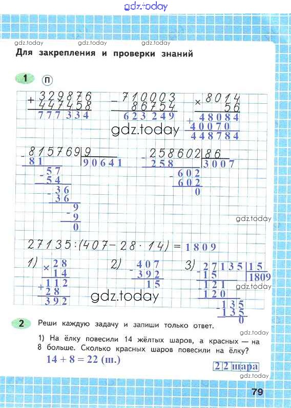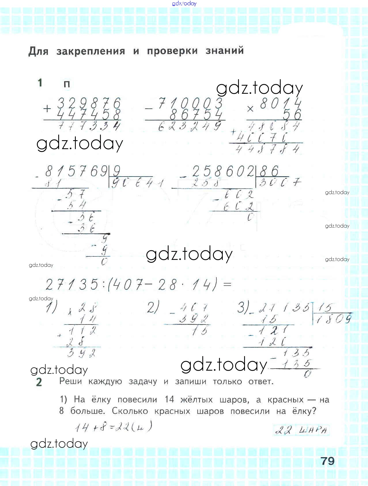 На страницах сайта gdz.today вы найдете учебный и вспомогательный материал, направленный на улучшения знаний школьной программы. ГДЗ - онлайн мир знаний Решение к части 2. Страницы 79 Рабочей тетради по Математике для 4 класса Волкова Просвещение Школа России 2016