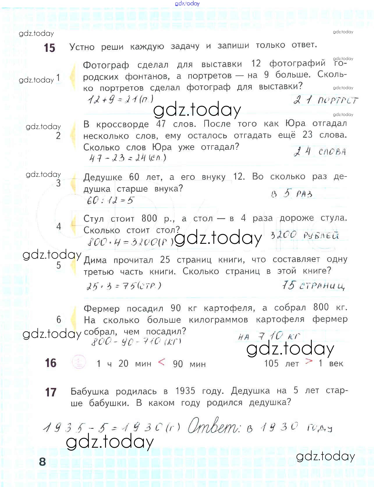 На страницах сайта gdz.today вы найдете учебный и вспомогательный материал, направленный на улучшения знаний школьной программы. ГДЗ - онлайн мир знаний Решение к части 2. Страницы 8 Рабочей тетради по Математике для 4 класса Волкова Просвещение Школа России 2016