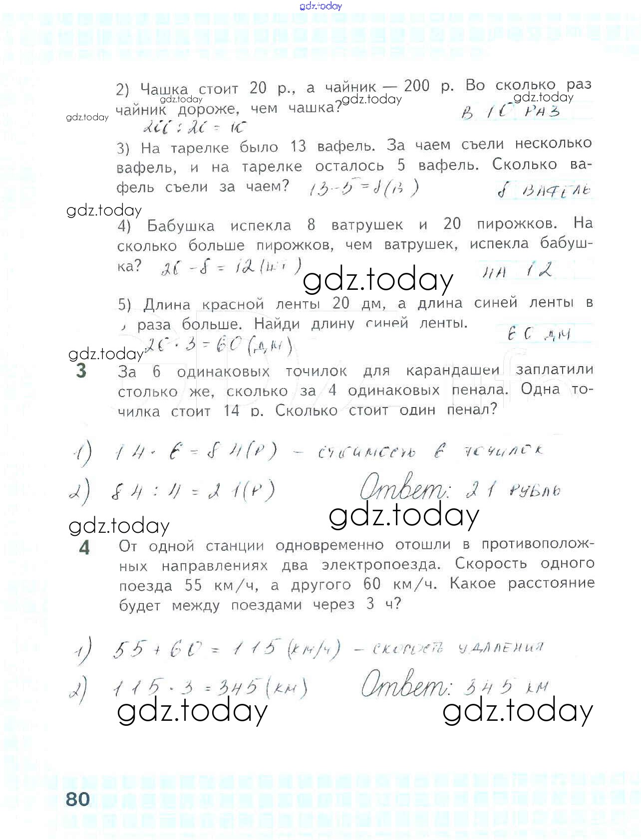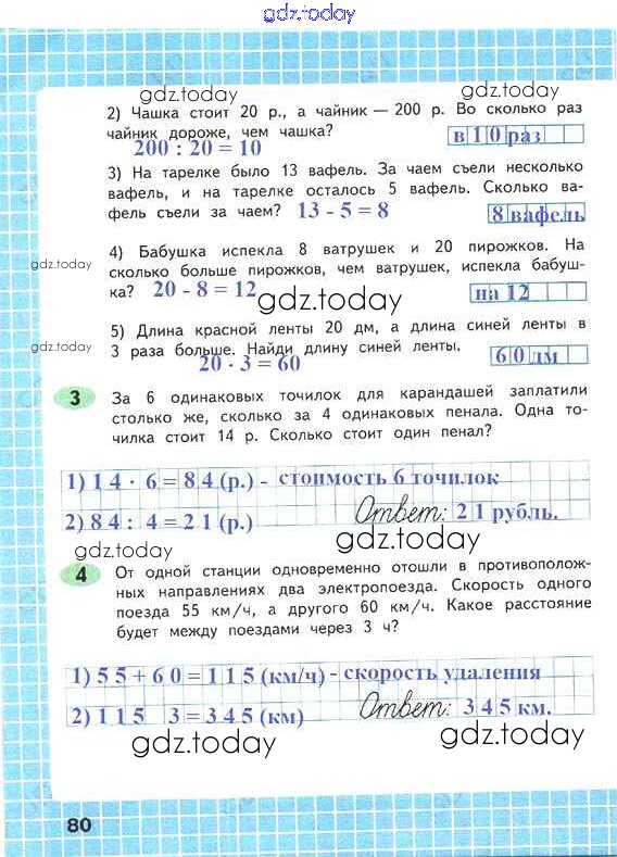 На страницах сайта gdz.today вы найдете учебный и вспомогательный материал, направленный на улучшения знаний школьной программы. ГДЗ - онлайн мир знаний Решение к части 2. Страницы 80 Рабочей тетради по Математике для 4 класса Волкова Просвещение Школа России 2016